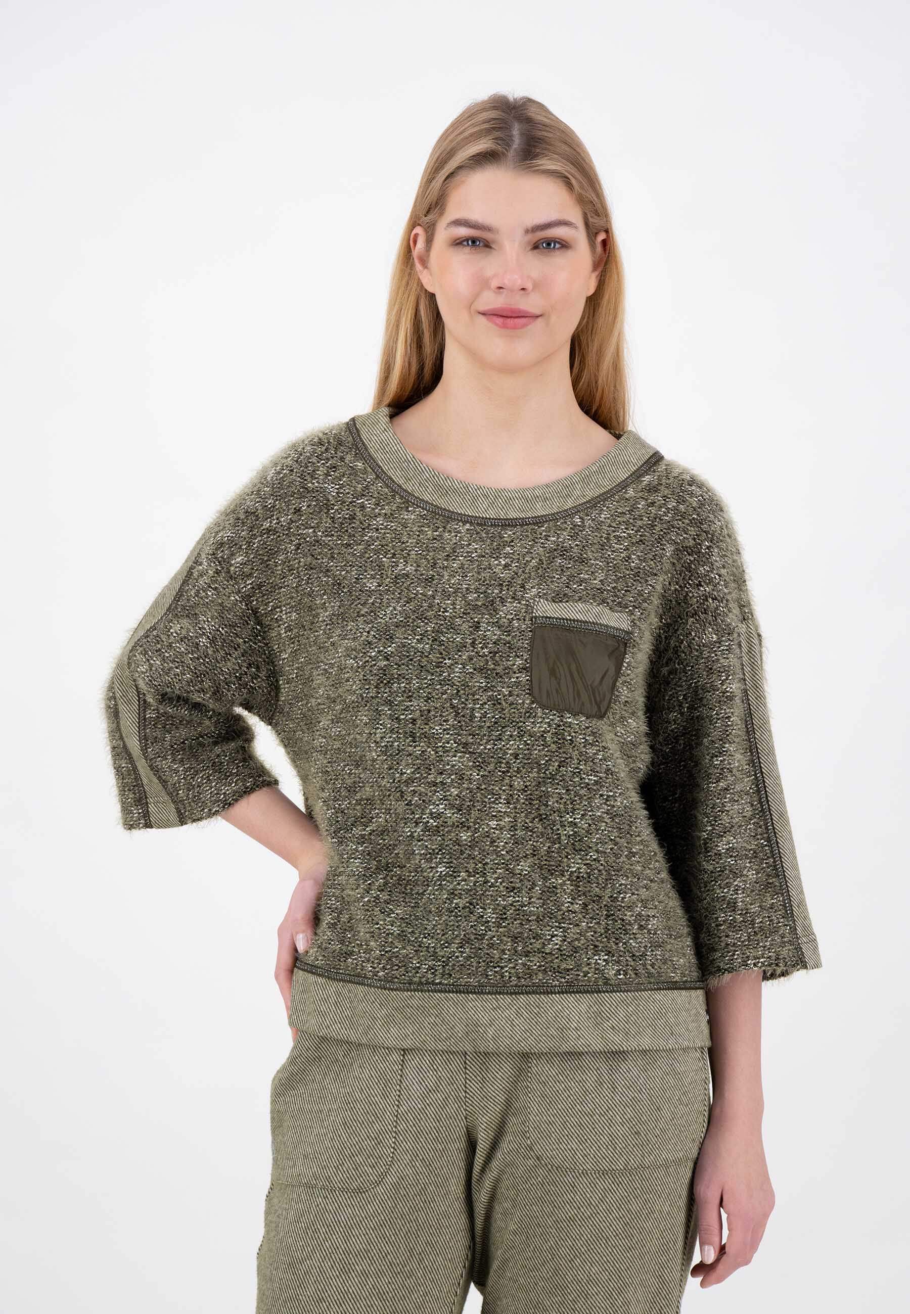 На сайте указаны российские размеры. Трикотажный свитер вне времени — стильная изюминка благодаря своим разнообразным свойствам: приятный мягкий трикотаж сочетается с широким разрезом по низу и небольшим нагрудным карманом тон в тон с тонкими швами из люрекса. В сочетании с базовым топом или белой блузкой образ можно носить совершенно естественно или особенно современно. Смесь материалов из полиакрила, хлопка, вискозы и эластана обеспечивает удобную посадку, мягкое сцепление и необходимую эластичность. Наша модель ростом 177 см. Измерения для 44 размера: Окружность груди: 115 см Талия: 115 см Бедра: 115см Длина спинки: 55 см Длина рукава: 32 см