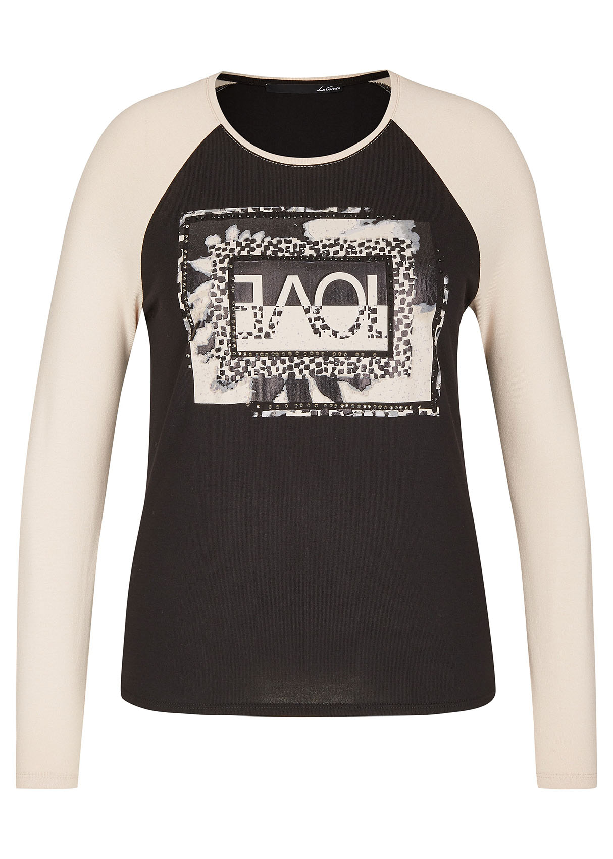 Джемпер с контрастным принтом. Полуприлегающий силуэт, круглый вырез горловины, длинные рукава реглан. Приятный к телу материал из смеси вискозы, полиэстера и эластана.