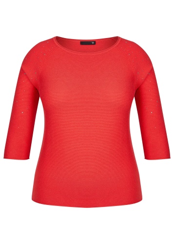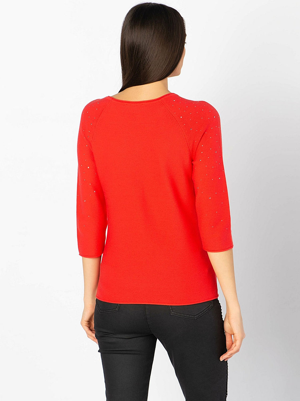 • слегка приталенный силуэт • круглый вырез • рукав 2/3, реглан • декор: стразы • практичный и приятный к телу материал из смеси хлопка и полиакрила