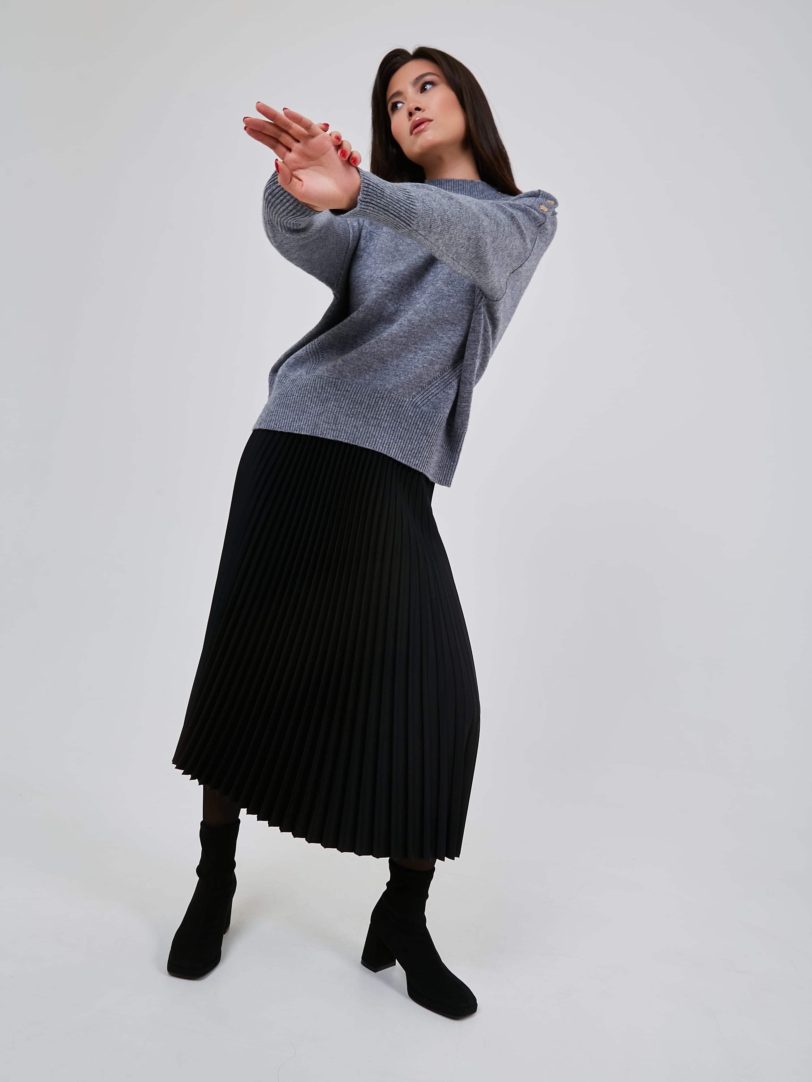 Интересный стильной джемпер с декоративными стальными пуговицами по плечевому шву. Осень-Зима'25/26. Капсула "Вишневый сад"