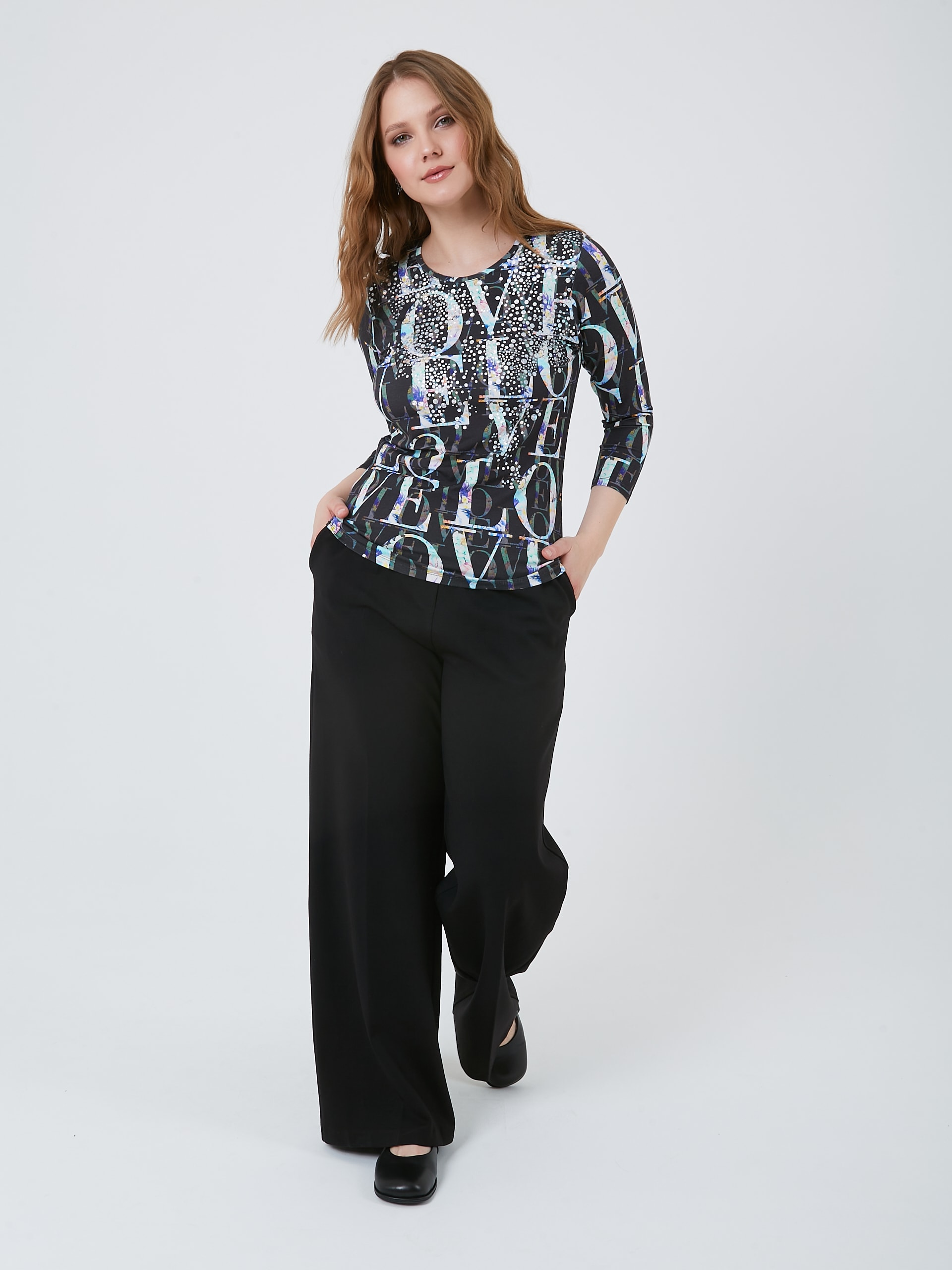 Лонгслив с крупным принтом в виде слова LOVE. Рукав 3/4. Осень-Зима'25/26. Капсула "Малахитовая шкатулка"