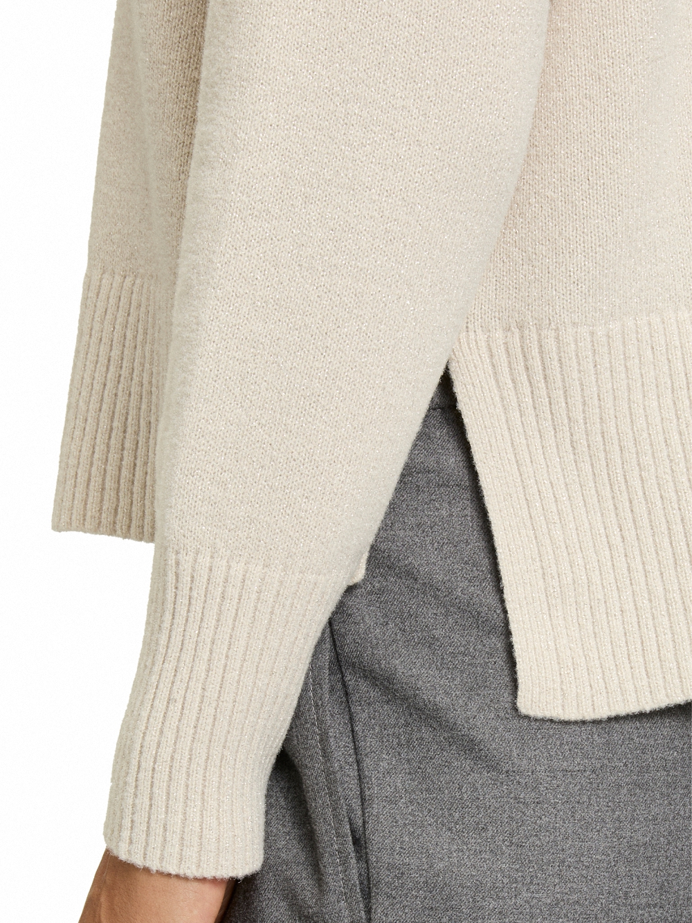 Классический свитер молочного цвета с высоким горлом и выточками по бокам. Подойдет как к классическому так и к свободному стилю