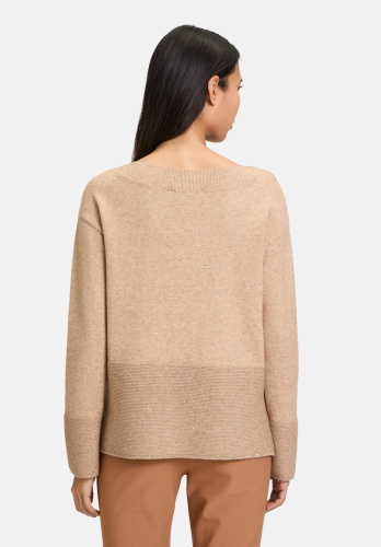 Повседневный вязаный свитер с отделкой из сверкающих пайеток от Betty Barclay. Вырез-лодочка и спущенные рукава придают изделию современный вид, а простой дизайн делает его универсальным. Идеально подходит для создания непринужденных повседневных образов с ноткой гламура.