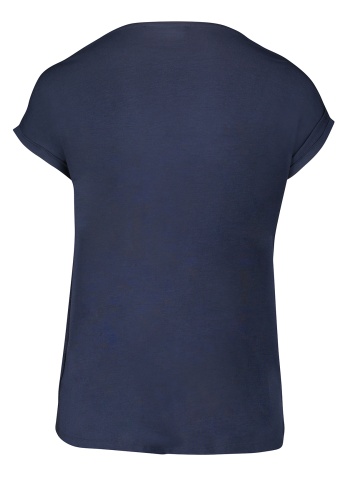 Футболка полуприталенного силуэта. Необычная фактурная ткань переда изделия. Вырез горловины "лодочка" подчеркивает элегантность и женственность обладательницы футболки. Короткие цельнокроеные рукава оформлены фиксированными манжетами. Еще один элемент дизайна - имитация многослойного низа футболки. Приятный к телу материал из вискозной смеси.