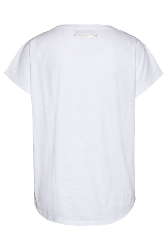 Очаровательная футболка в стиле кэжуал. Прямой покрой и рукава со спущенным плечом, а также приятный хлопковый материал обеспечат удобство и комфорт. Завершают дизайн закругленная линия низа изделия и забавный принт.
