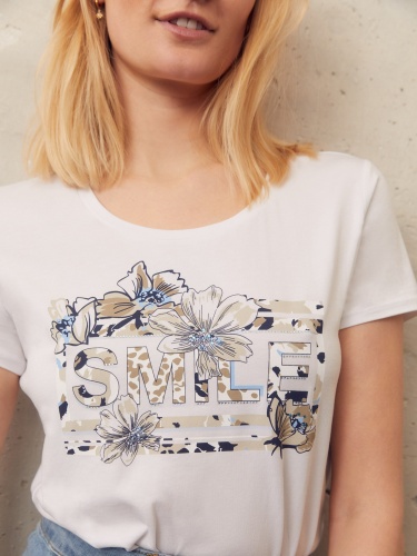 Базовая футболка белого цвета с цветочным принтом спереди. - прямой крой - круглый вырез - с коротким рукавом - приятная смесь хлопка и модала - длина по размеру 42 = 62 см