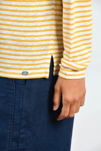 На сайте указаны Российские размеры. Футболка прямого кроя с длинными рукавами и спущенными плечами. Вышивка якоря на груди. На левом плече нарядная застежка с перламутровыми пуговицами. Круглый воротник. Небольшие разрезы по низу изделия.