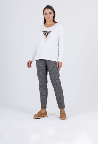 На сайте указаны российские размеры. Ткань: 92% вискоза, 8% эластан. Крой: джемпер из мягкой эластичной вискозы прямого силуэта с круглым вырезом и длинным рукавом. Базовая модель, которая хорошо подходит женщинам разных типов фигур, включая нестандартные. Имеет достаточную длину, прикрывает область живота, не поднимается вверх при ходьбе. Отделка: леопардовый принт, геометрия и россыпь переливающихся страз – нет, не слишком. Яркие детали создают яркое настроение, а это как раз то, что нужно в череде серых будней. Идеальная база для однотонного низа, без принтов и паттернов. Выберите юбку, джинсы или брюки в соответствующих разделах на нашем сайте.