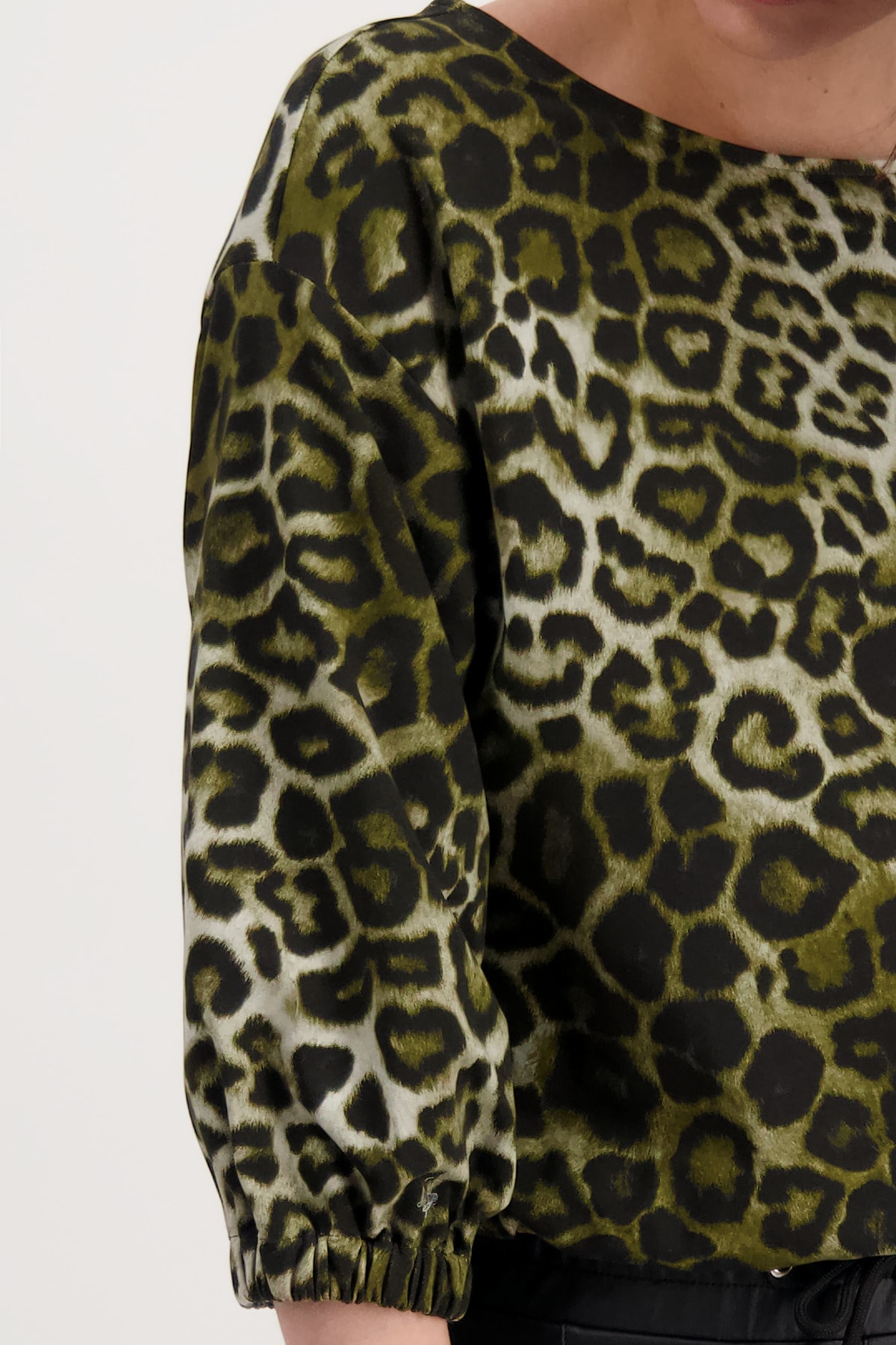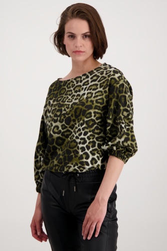 На сайте указаны российские размеры. Толстовка с анималистичным принтом, рукавами ¾ и вырезом «лодочка». Приятное качество эластичного хлопка создает великолепный женственный силуэт благодаря красивому вырезу-лодочке. Широкий рукав ¾ с резинками на концах рукавов и резинкой по низу придает изделию спортивный и стильный вид. Закрепите эту привлекающую внимание вещь и носите ее, например, с классными кожаными брюками. Модель ростом 179 см. Длина спины 44 размера составляет 60 см.