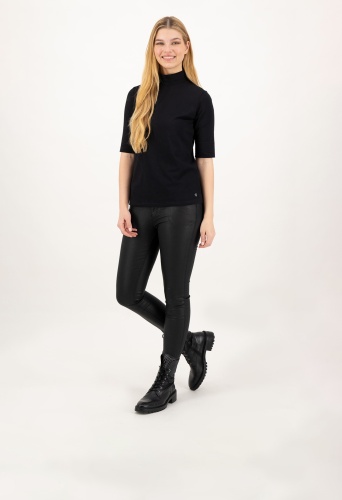 На сайте указаны российские размеры. Черная водолазка с модными короткими рукавами — актуальная комбинация для модных образов осенью и зимой. Рубашку можно носить с повседневным кардиганом или элегантно сочетать со стильным блейзером . Благодаря сочетанию комфортного эластана и высококачественного хлопка приталенная рубашка с короткими рукавами и водолазкой особенно удобна в носке. Кроме того, приталенный крой рубашки с высоким воротником создает красивую фигуру. Особое внимание привлекает маленькое сердечко из сверкающих серебряных стразов на подоле. Наша модель ростом 177 см. Измерения для размера 44: Окружность груди: 92 см Талия: 88 см Бедра: 97 см Длина по спинке: 62 см. Длина рукава: 31 см.