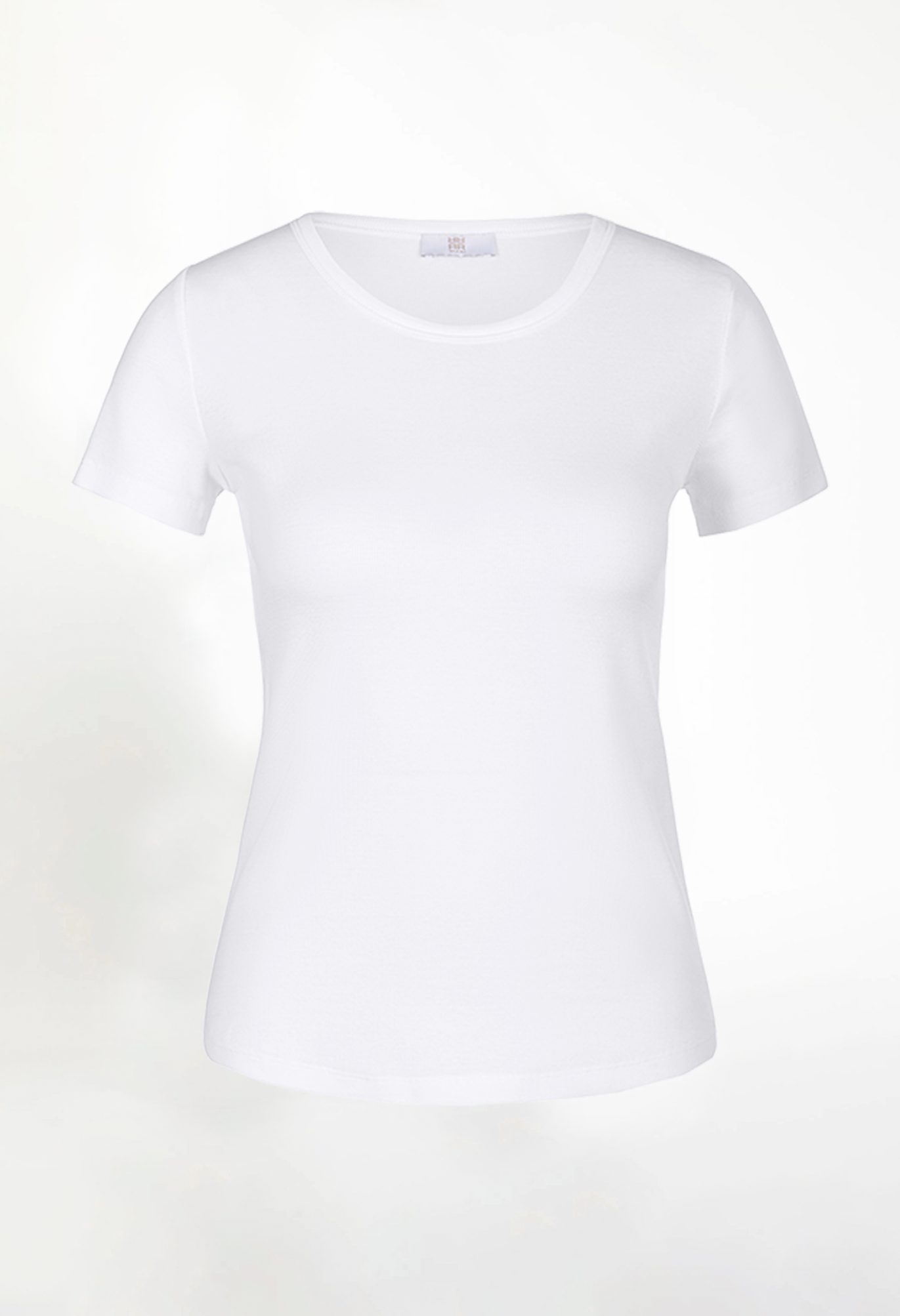 На сайте указаны российские размеры. Повседневный, спортивный шик характеризует эту стройную рубашку с короткими рукавами из эластичного трикотажа в рубчик, которая идеально сочетается с нашими повседневными образами, но также привносит утонченную свежесть в более официальные образы. Рубашки в рубчик по-прежнему очень популярны и обязательны для каждого гардероба. Благодаря резинке основа имеет более грубую структуру, но хлопковая ткань удивительно мягкая. Модель ростом 177 см.