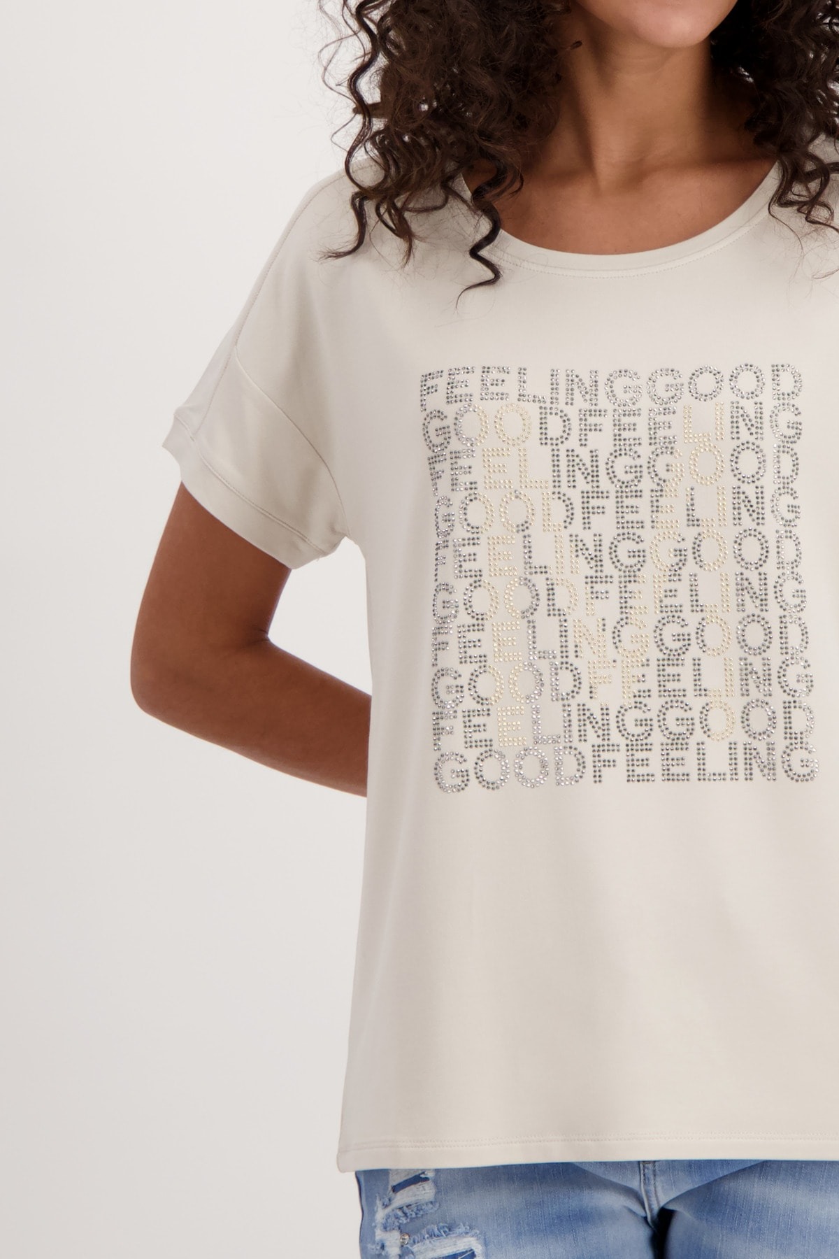 На сайте указаны российские размеры. Футболка со сверкающей надписью из страз привлекает всеобщее внимание. Покрой вдохновляет на классический крой с круглым вырезом горловины, полурукавами и манжетами на кромке рукава. Верх с блестками — всегда лучший выбор, он умело украсит любой наряд в стиле смарт-кэжуал. Длина в размере 44: 64 см. Рост модели 177 см.