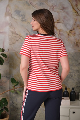 Ткань из натуральных материалов обеспечит комфорт и прохладу жарким летом. Свободный покрой скроет недостатки фигуры. Поверх принта "полоска" располагается вышивка "сердце". Простой и лаконичный дизайн делает данную модель базовой, позволяя удачно сочетать ее с разными комплектами одежды.