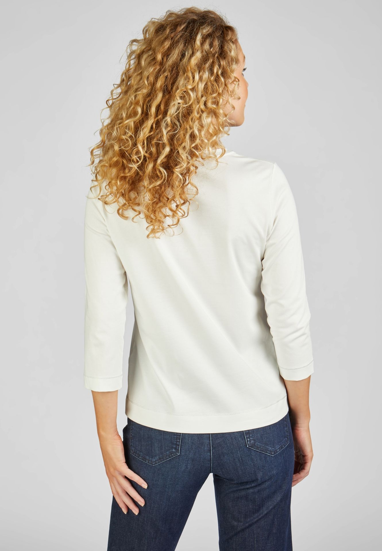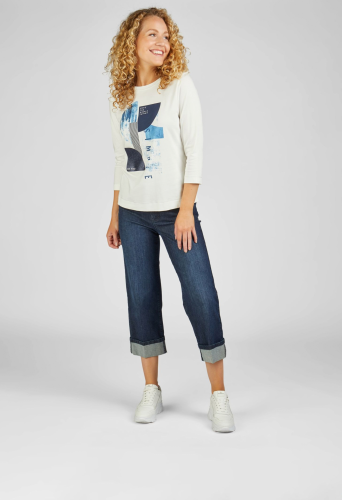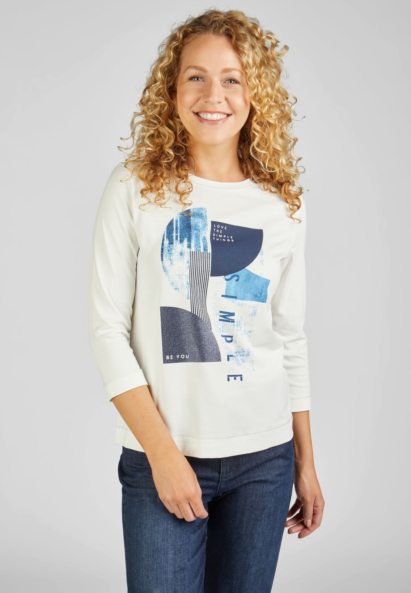 Универсальная футболке имеет модные рукава 3/4 и удобный круглый вырез, стильный и удобный. Привлекательный принт спереди придает этой футболке уникальный вид и расставляет модный акцент в вашем наряде. Длина спинки от плеча для 44 размера: 62 см.