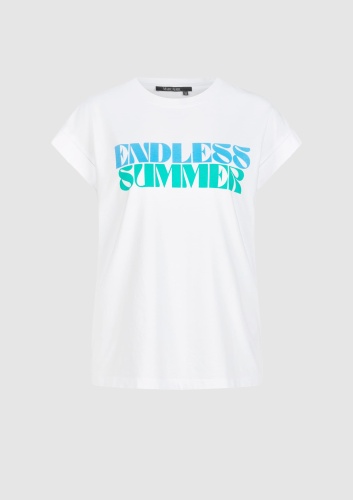 Лето никогда не должно заканчиваться, согласно этой футболке с принтом «Бесконечное лето». Изготовленное из высококачественного хлопкового трикотажа с добавлением хлопка Better Cotton Initiative, оно символизирует экологичность моды. Модный свободный крой идеален для теплых летних дней.