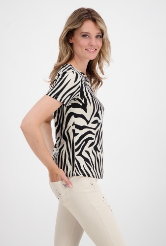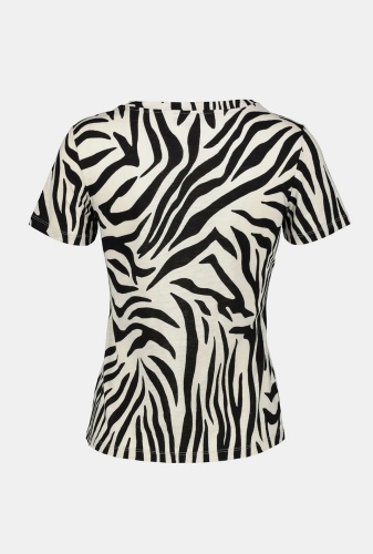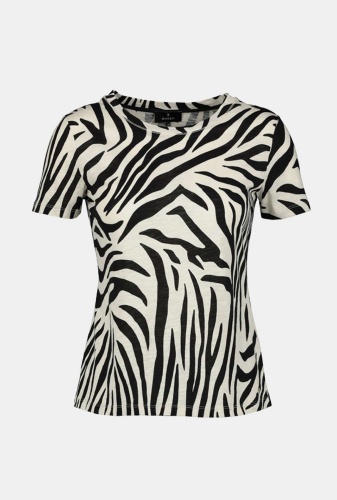 Футболка свободного силуэта в анималистичном принте – яркий элемент гардероба современной женщины. Круглая горловина, втачной короткий рукав. В сочетании с брюками или юбкой станет частью трендового образа.