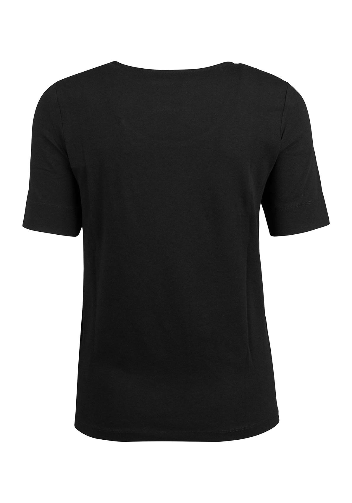 Эта классическая футболка с рукавом 1/2 и круглым вырезом горловины предоставляет широкий спектр возможных комбинаций. Данная модель сочетает в себе безупречный дизайн с удобным покроем. Высококачественная ткань из смеси хлопка и эластана обеспечивает комфорт в ношении и сохраняет форму даже после стирки! Благородную базовую футболку можно сочетать с легким кардиганом или элегантным блейзером.