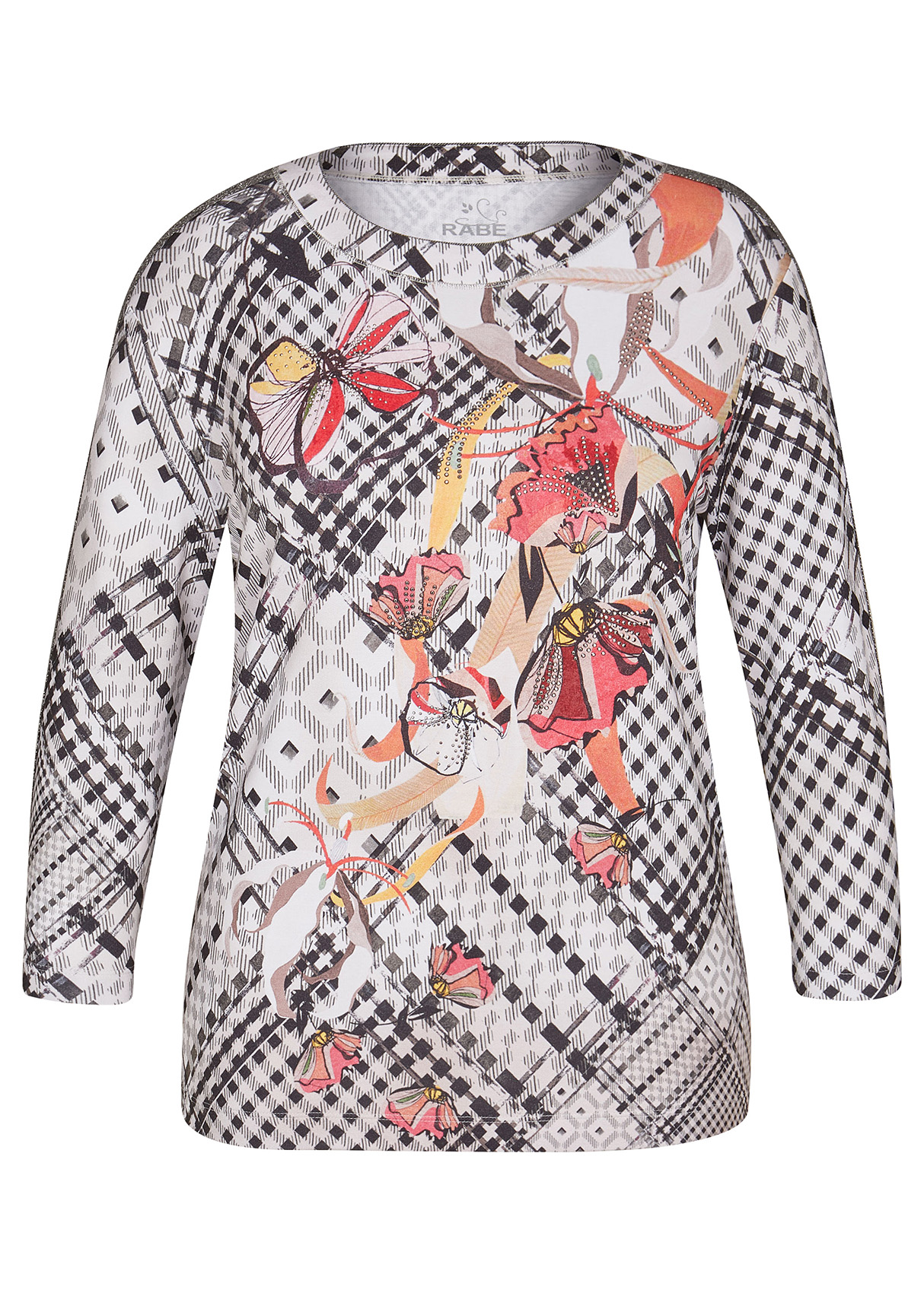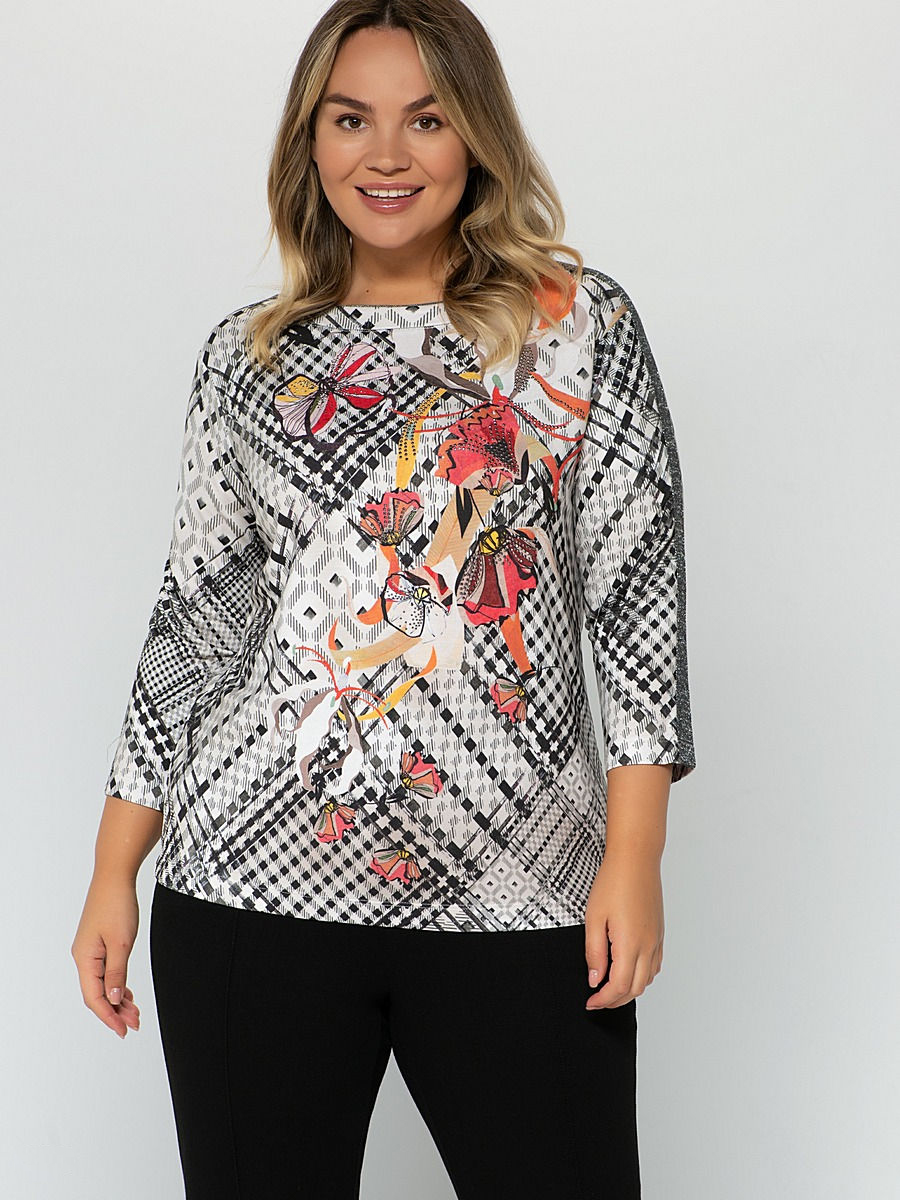 Футболка с длинными рукавами - отличный выбор для повседневного образа. Прямой покрой, круглый вырез горловины. Смелое сочетание клетки и цветов в принте подчеркивается декором из страз. Приятный к телу эластичный материал с вискозой и модалом обеспечивает комфорт в ношении.