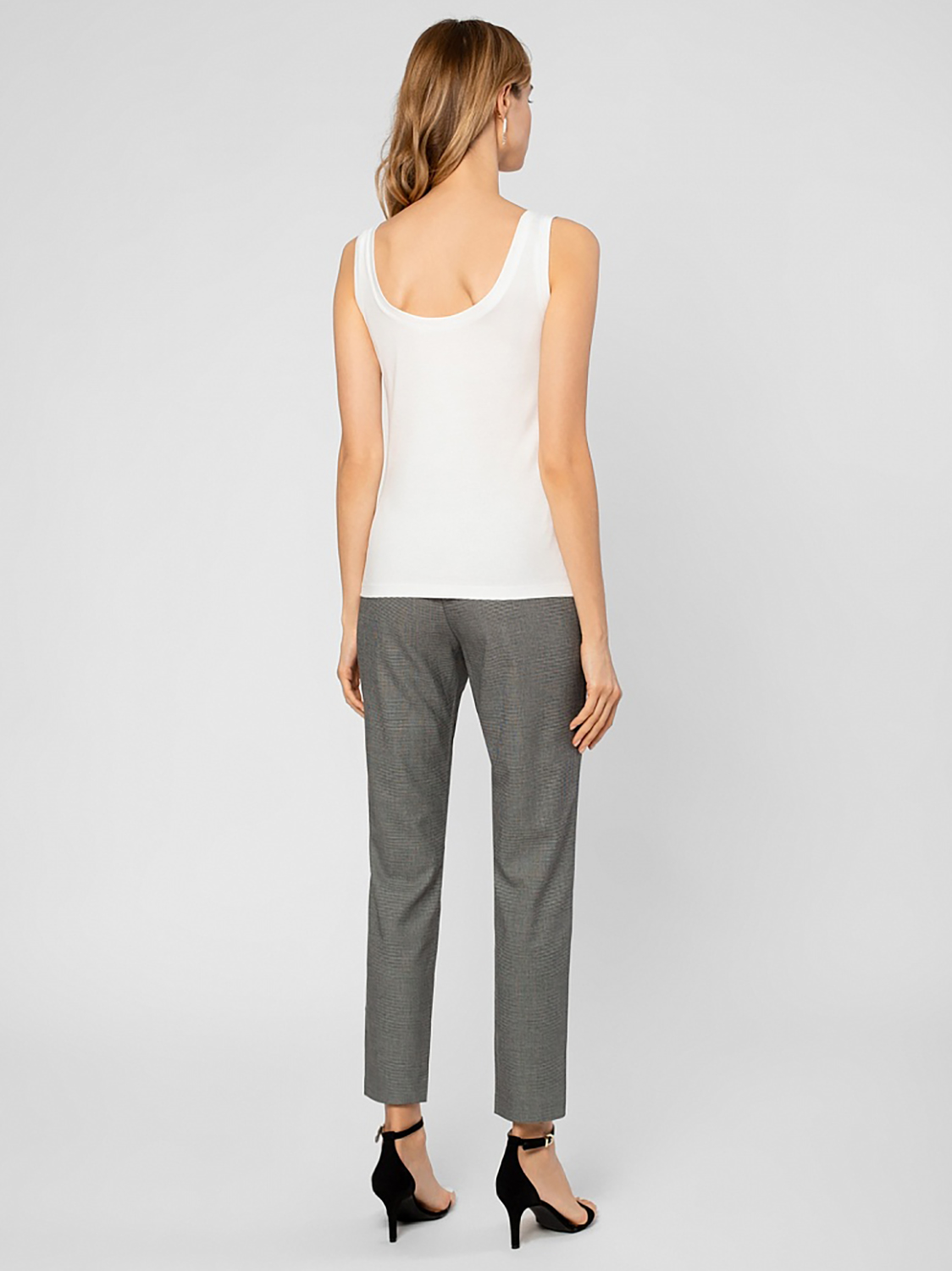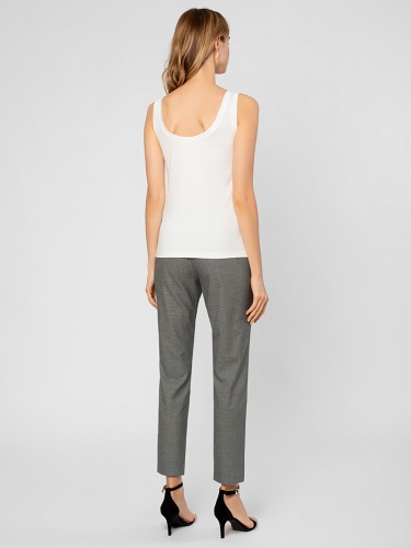 Базовый однотонный топ с широким овальным вырезом. Приталенный силуэт. Топ прекрасно сочетается с любым низом, белоснежный оттенок придает свежести образу.