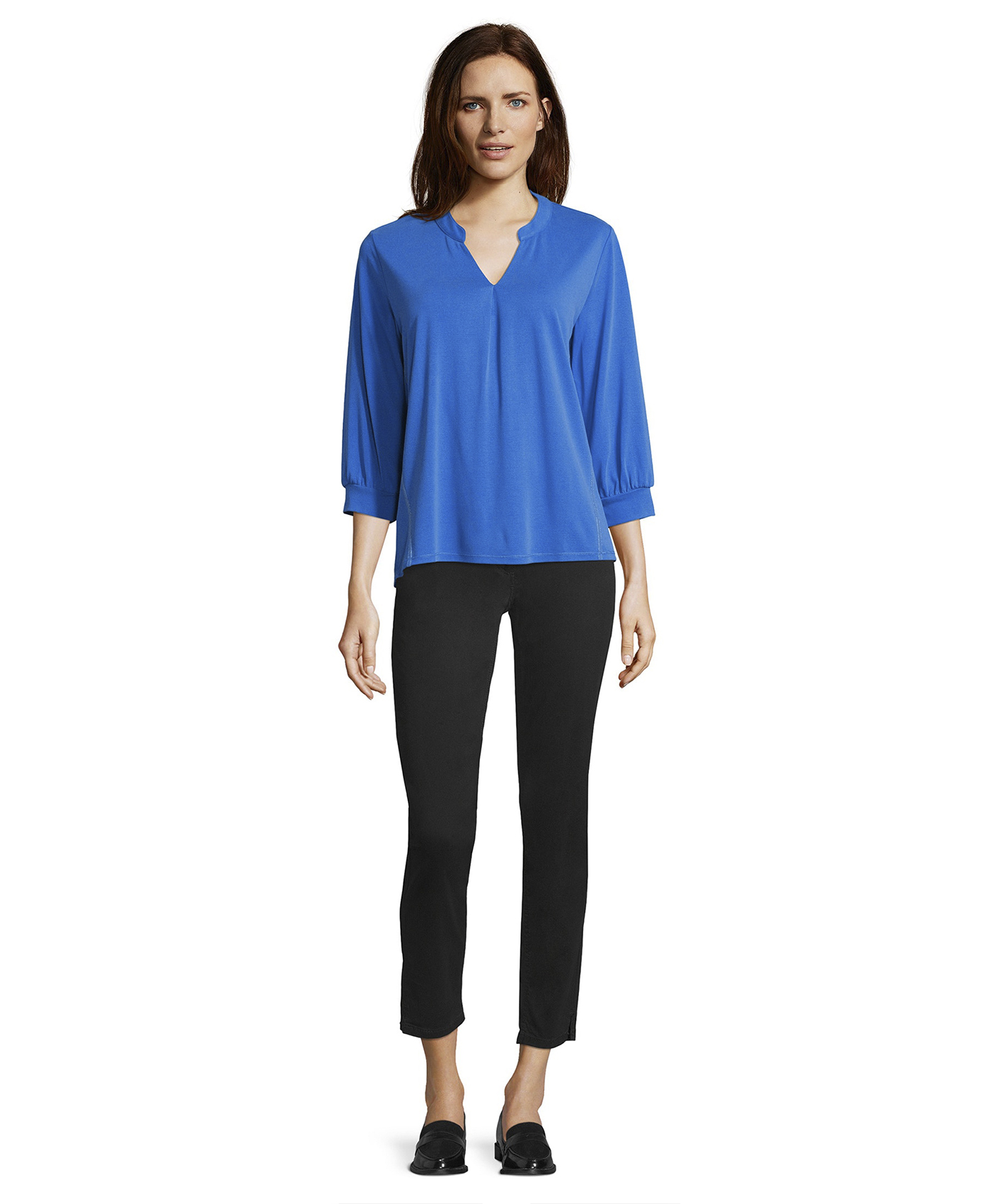 Вещи свободного покроя - один из главных трендов современности! Однотонная футболка с V-образным вырезом горловины и рукавами 3/4. Приятный к телу материал из смеси модала и полиэстера. Эта футболка - отличный вариант верха для образа в стиле кэжуал.