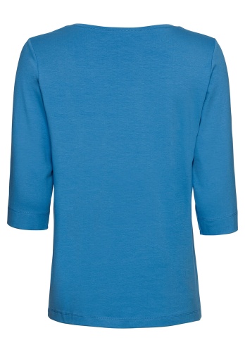Простая футболка прямого покроя - обязательный элемент базового гардероба. Приятный к телу материал из смеси хлопка, модала и эластана обеспечит комфорт и идеальную посадку. Рукав 2/3 и широкая круглая горловина придают модели непринужденный вид. Эта футболка подходит как для офиса, так и для прогулки.