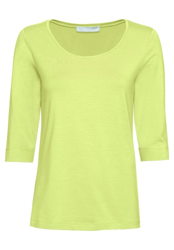 Простая футболка прямого покроя - обязательный элемент базового гардероба. Приятный к телу материал из смеси хлопка, модала и эластана обеспечит комфорт и идеальную посадку. Рукав 2/3 и широкая круглая горловина придают модели непринужденный вид. Эта футболка подходит как для офиса, так и для прогулки.