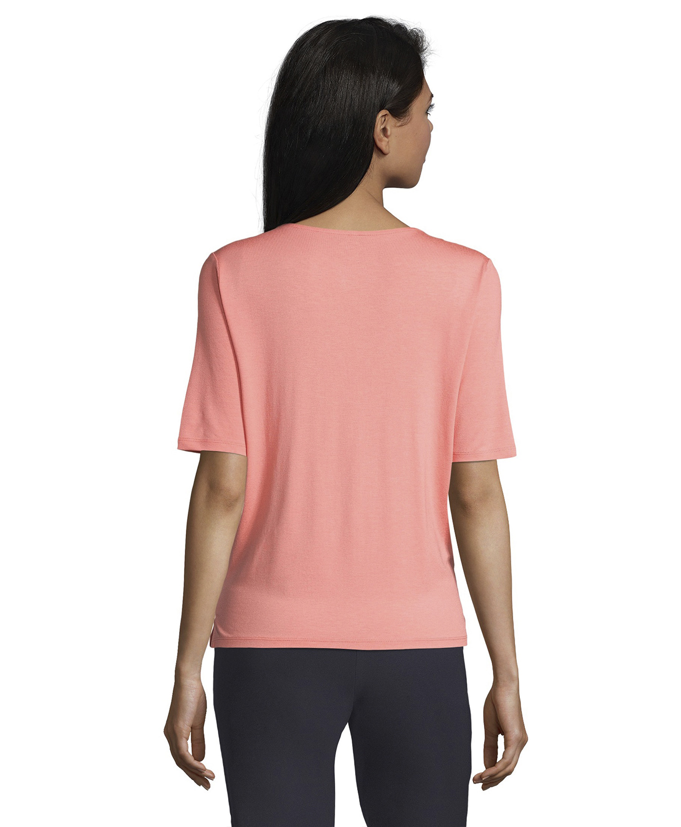 Базовая модель - однотонная футболка прямого кроя. Рукава 1/2, V-образный вырез горловины. Материал из вискозной смеси приятен к телу и обеспечивает комфорт. В сочетании с брюками футболка создает очень элегантный образ.