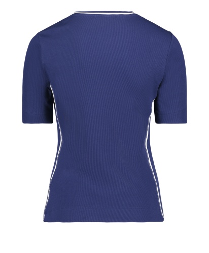 Футболка слегка приталенного силуэта. Круглый вырез горловины, рукава 1/2. Материал из хлопковой смеси приятен к телу и обеспечивает комфорт. Полосы тесьмы вдоль боковых швов и по вырезу горловины придают элементы спортивного стиля. Надпись из страз привносит в образ нотку гламура. Эта футболка - отличный вариант верха в стиле кэжуал!