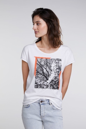 Футболка прямого силуэта - абсолютный тренд. Широкий круглый вырез горловины, короткие рукава. Принт с яркими акцентами привлекает внимание. Хлопковый материал приятен к телу и обеспечивает комфорт. Эта модель в стиле кэжуал обеспечивает создание современного демократичного образа.