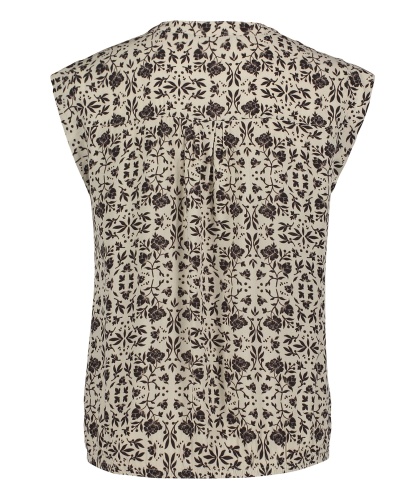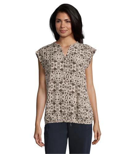 Цветочный принт в тренде! Топ свободного покроя с короткими рукавами и V-образным вырезом горловины. Вискозный материал приятен к телу и обеспечивает максимальный комфорт. Эта современная модель - идеальный компаньон для любого однотонного варианта низа.