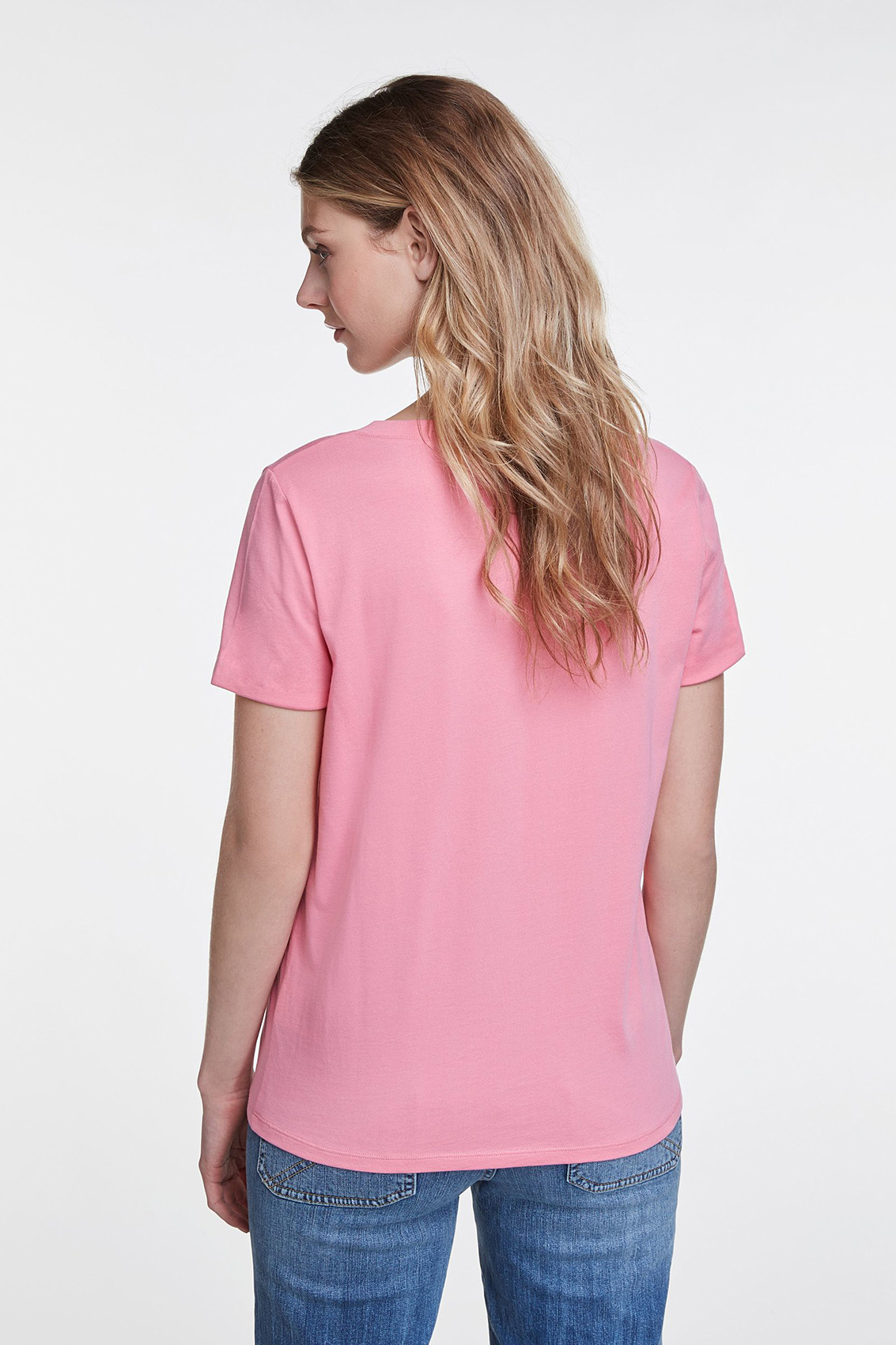Базовая однотонная футболка сочетается с любыми вещами и является необходимым элементом современного гардероба. Прямой покрой, V-образный вырез горловины, короткие втачные рукава. Приятный к телу хлопковый материал обеспечивает комфорт в ношении.