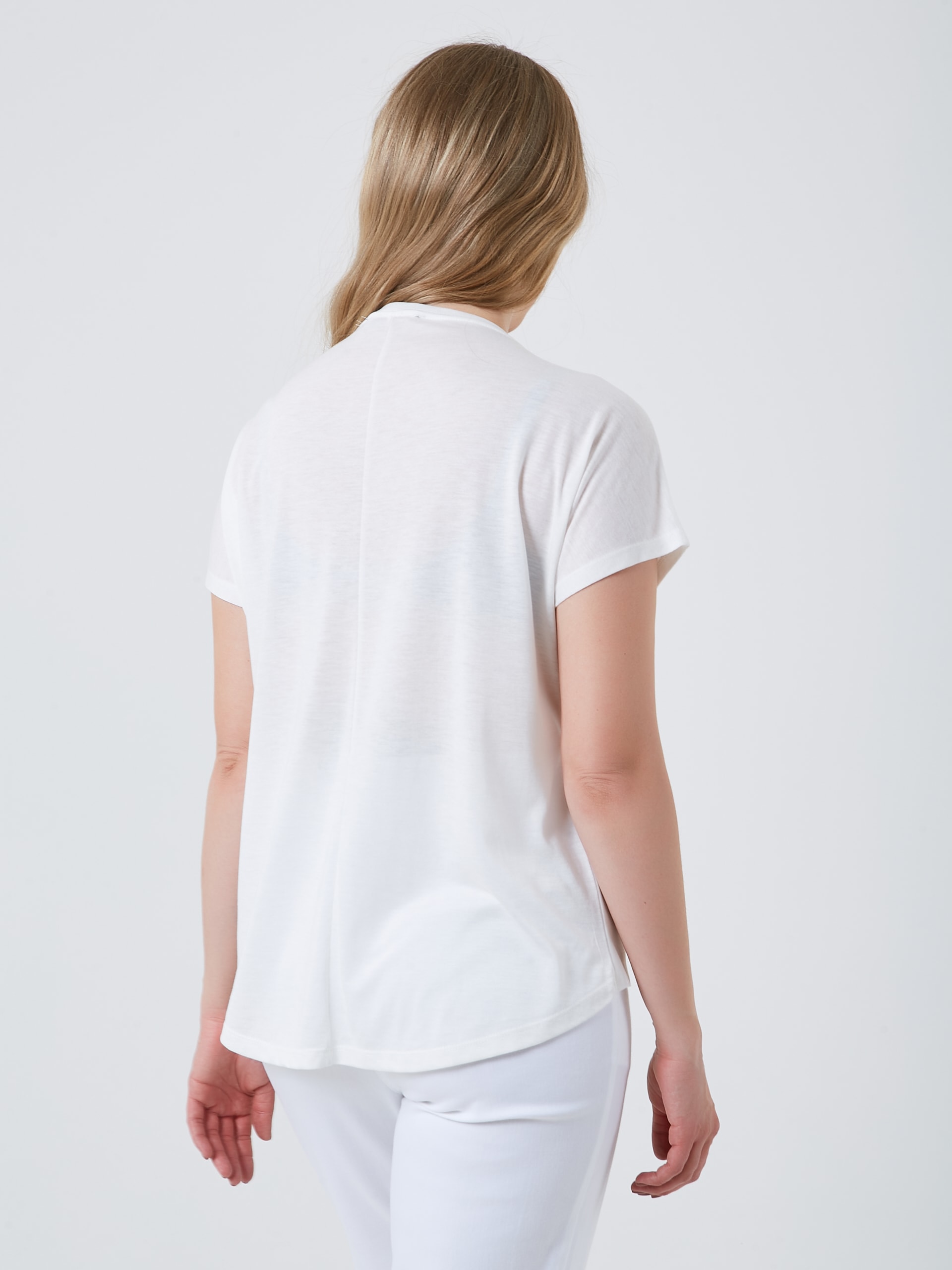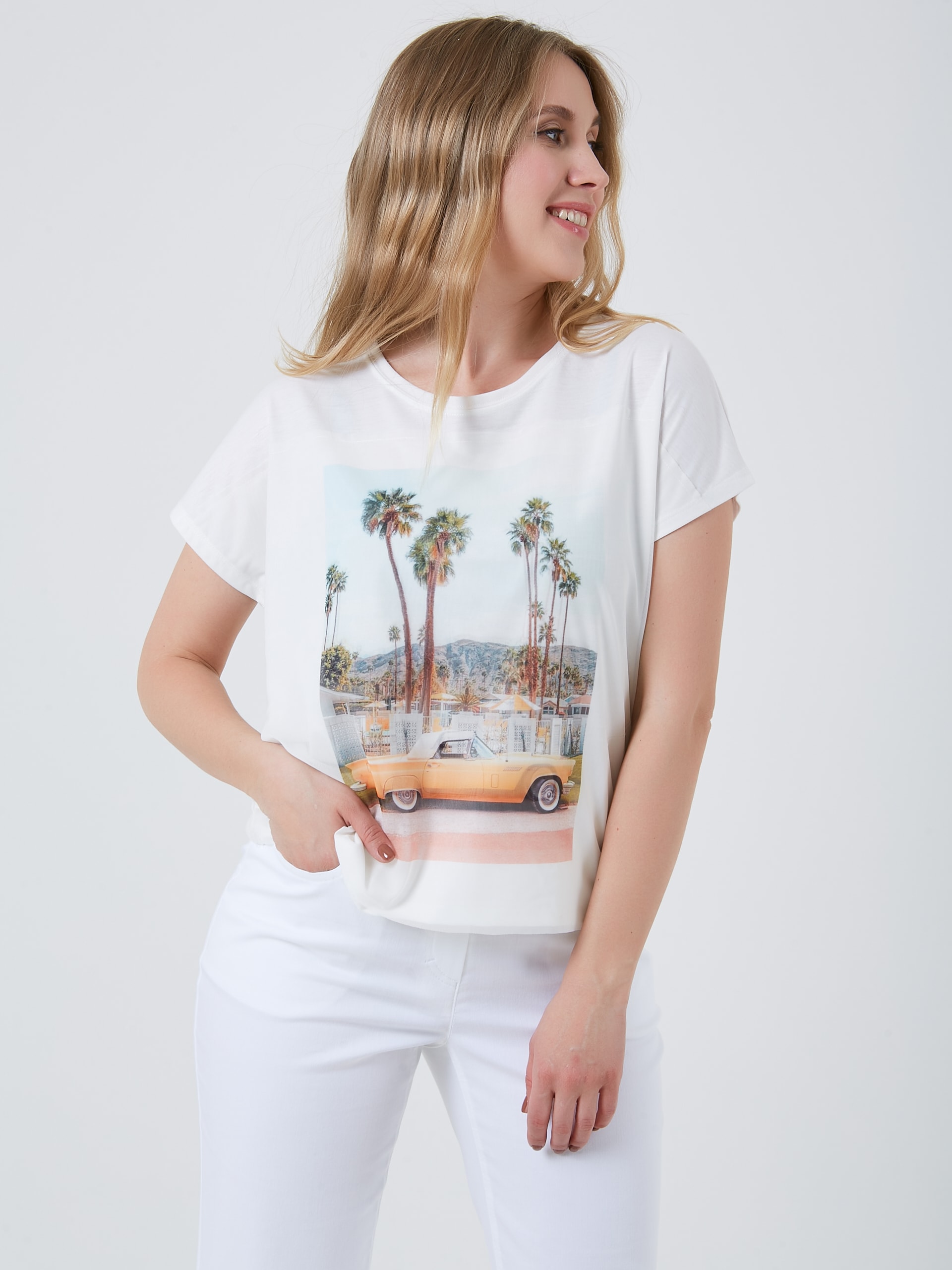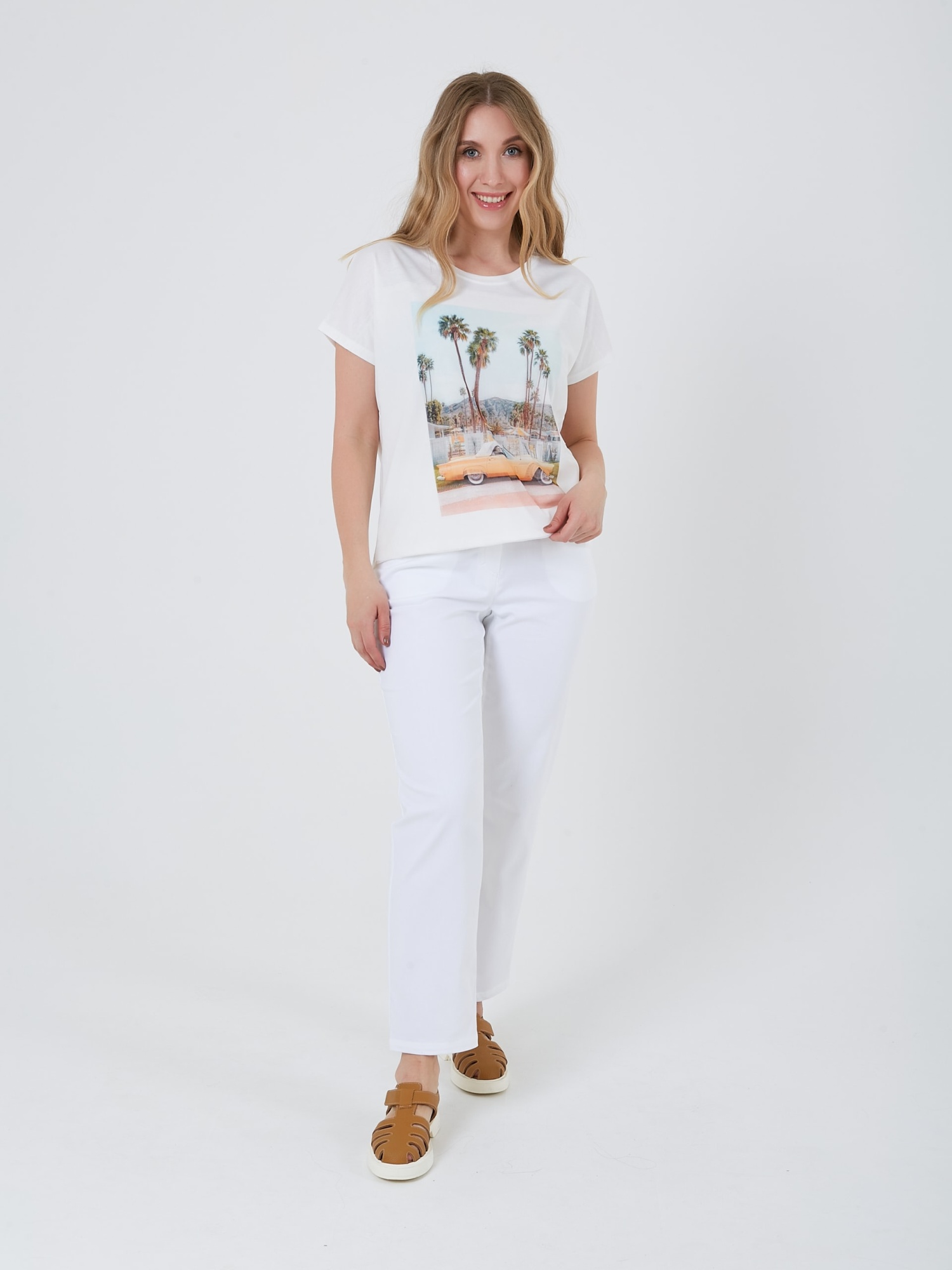 Классическая футболка с дублированным принтом на сетке и швом по спине. Весна-Лето 2025. Капсула "Рио де Жанейро". Параметры модели: 89-70-92, рост 167, размер 44-46