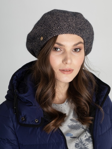 Элегантный берет из смеси шерсти и мохера приятен на ощупь и хорошо сохраняет тепло. Нить люрекса в составе придает акцентый блеск.