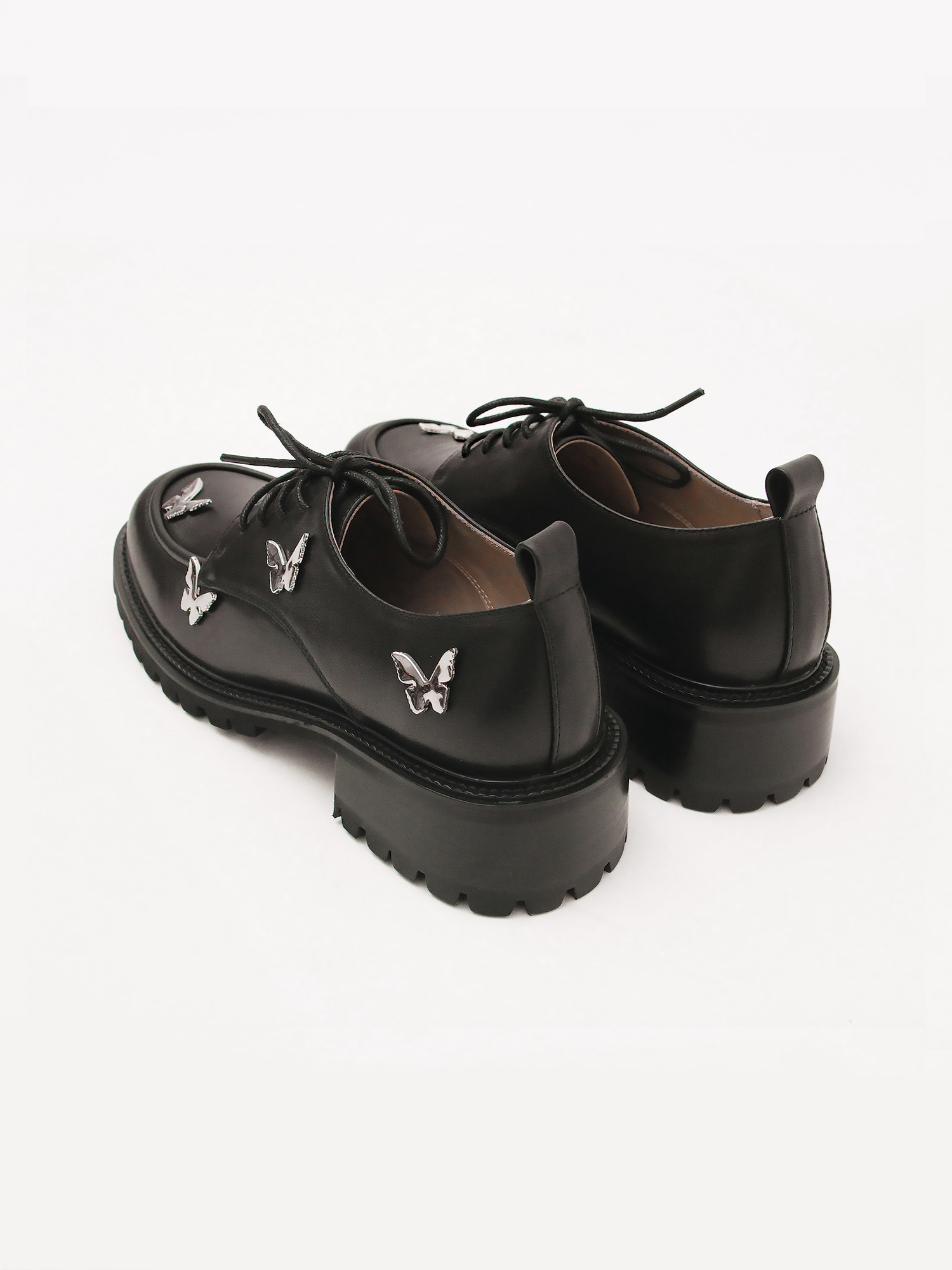 Оригинальные короткие ботинки итальянского бренда TUFFONI. Пара выполнена из натуральной кожи. Украшена металлическим декором в виде бабочек.
