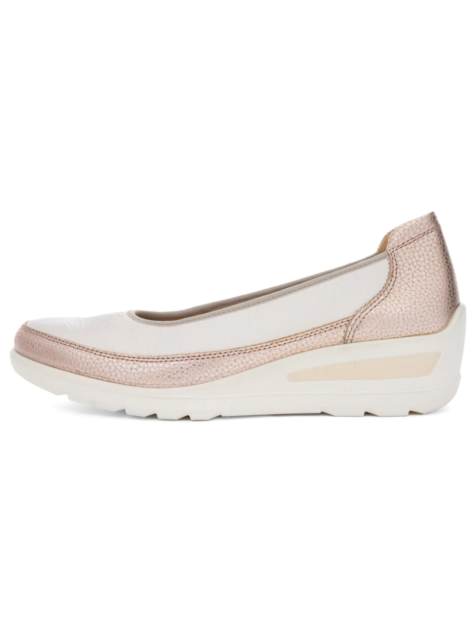 Туфли впечатляют своей простой элегантностью и спортивным стилем. Изготовленные из высококачественной мягкой кожи, они не только выглядят изысканно, но и дарят ощущение особого комфорта. Удобная стелька с мягкой подкладкой, которую можно заменить по мере необходимости, обеспечивает индивидуальный комфорт. Благодаря инновационной технологии HighSoft вы почувствуете отличную амортизацию и не будете уставать при ходьбе — идеально для долгих дней. Нескользящая подошва обеспечивает надежное сцепление, а модный каблук-танкетка подчеркивает спортивный характер обуви. Мягкая внутренняя подкладка и оптимальная посадка с круглым вырезом делают эти туфли идеальным повседневным спутником. Их вневременной дизайн легко сочетается с различными нарядами и подходит для самых разных случаев — как повседневных, так и офисных.