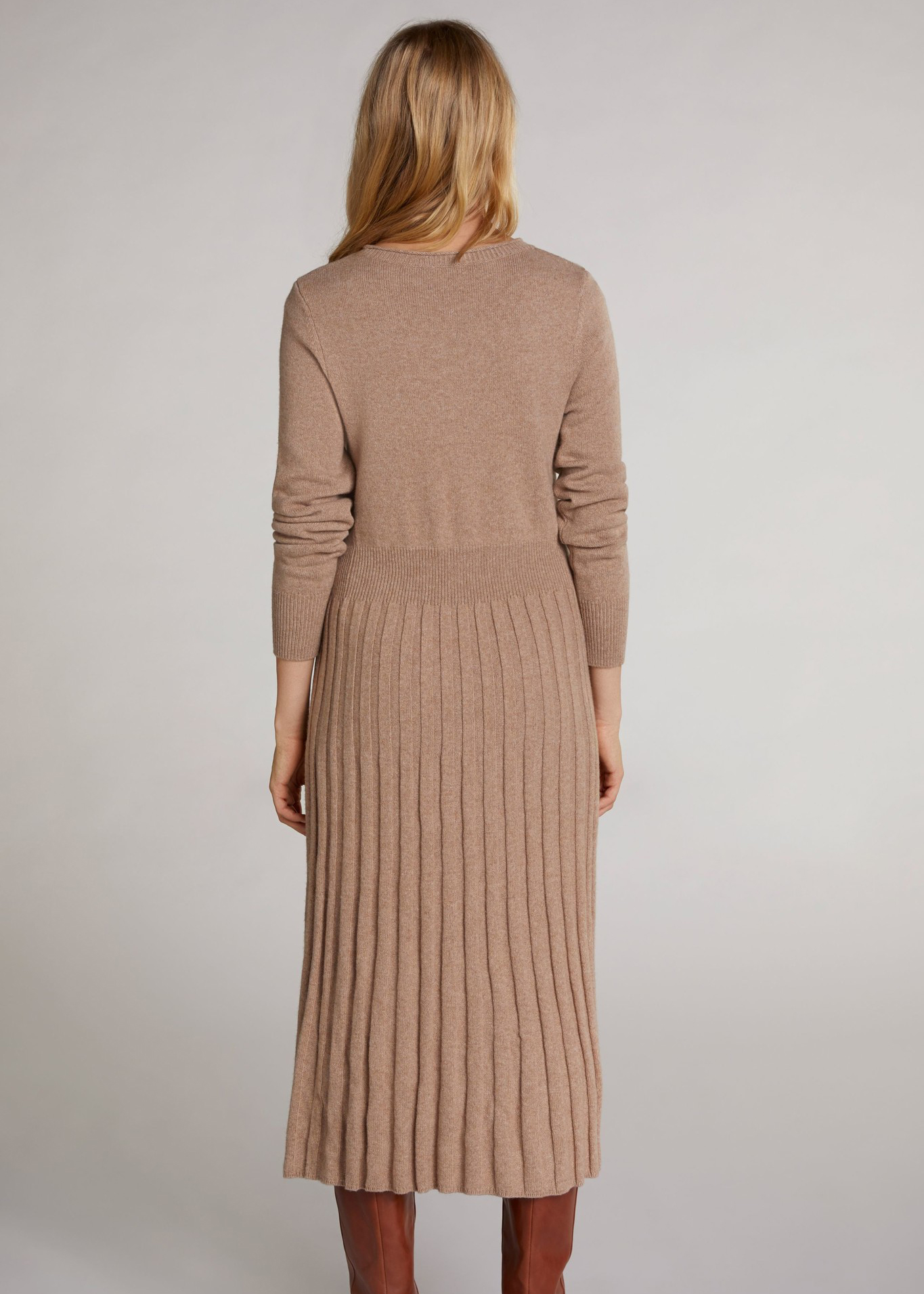 Трикотажное платье с плиссированной юбкой для уютного повседневного образа. Длина миди, приталенный силуэт, втачной рукав полной длины, широкая овальная горловина. Смесовая шесть в составе обеспечивает комфорт в ношении.