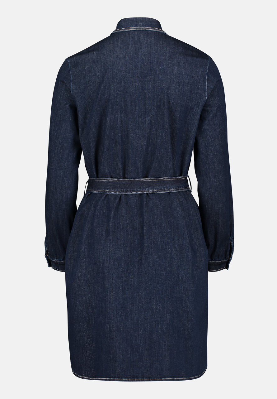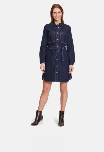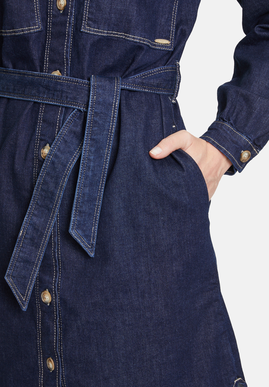 Платье-рубашка с завязывающимся поясом. Накладные карманы, карманы в швах. Длина 97 см.