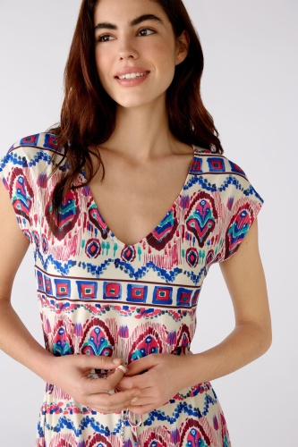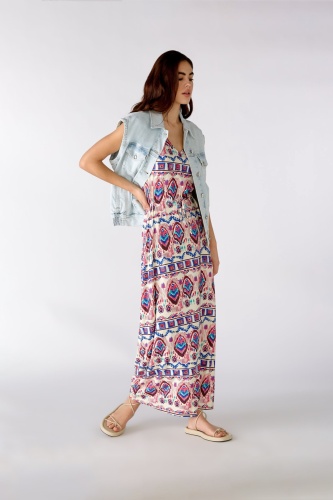 Немецкий бренд. На сайте указаны российские размеры. Модель свободного кроя до щиколотки со спущенными плечами. Ткань высокоэластичная облегающая без складок с модным принтом. Силуэт можно подчеркнуть ремешками на завязках.
