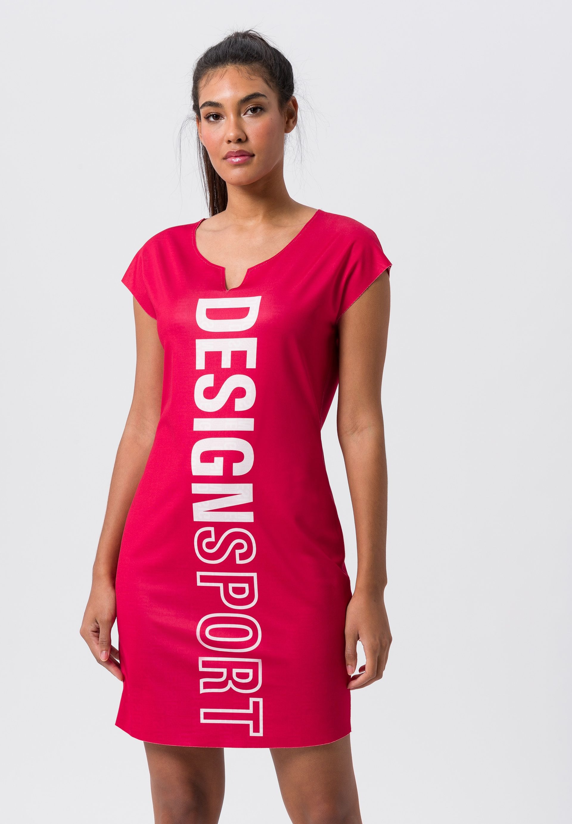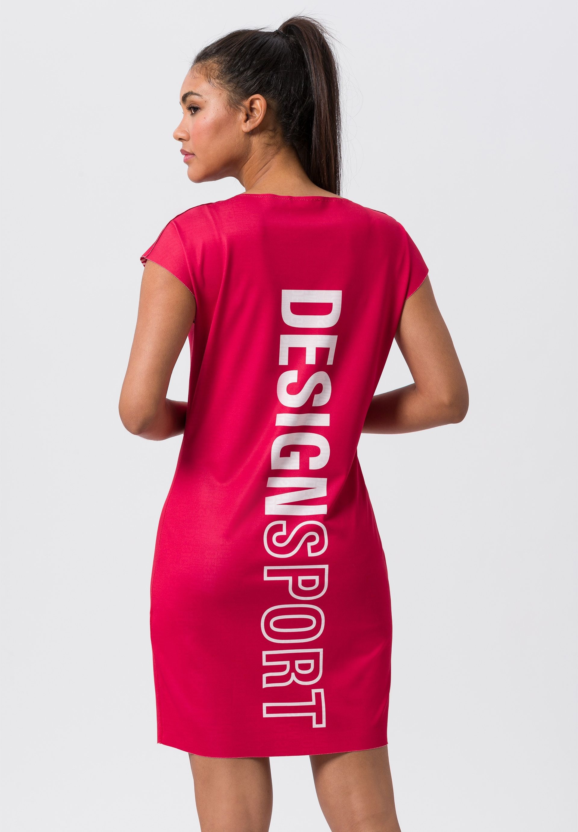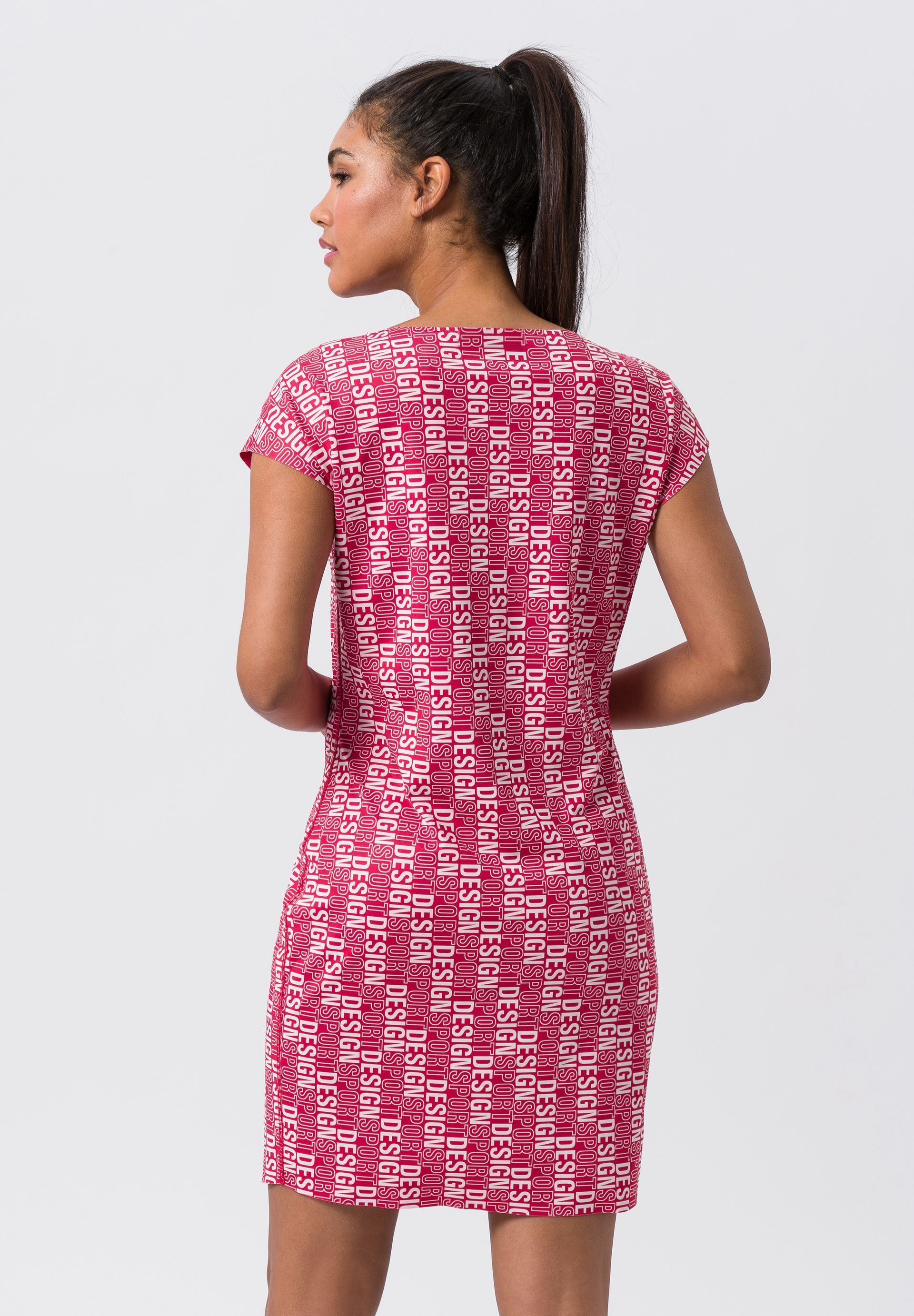 Двустороннее платье с крупным типографическим принтом в стиле спортшик.