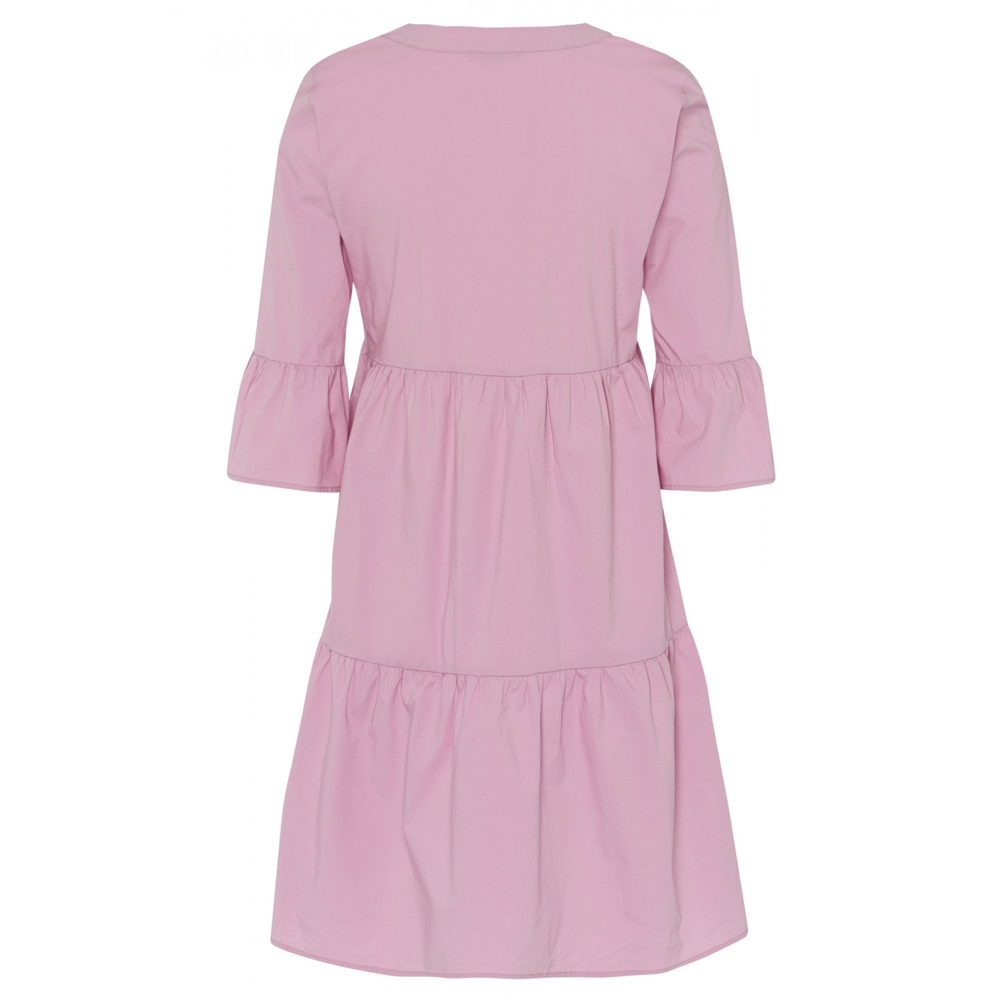 Хлопковое платье с ярусами. V-образный вырез горловиы. Длинные рукава 3/4 с воланами. Без подкладки. Длина в размере 42 = 96см