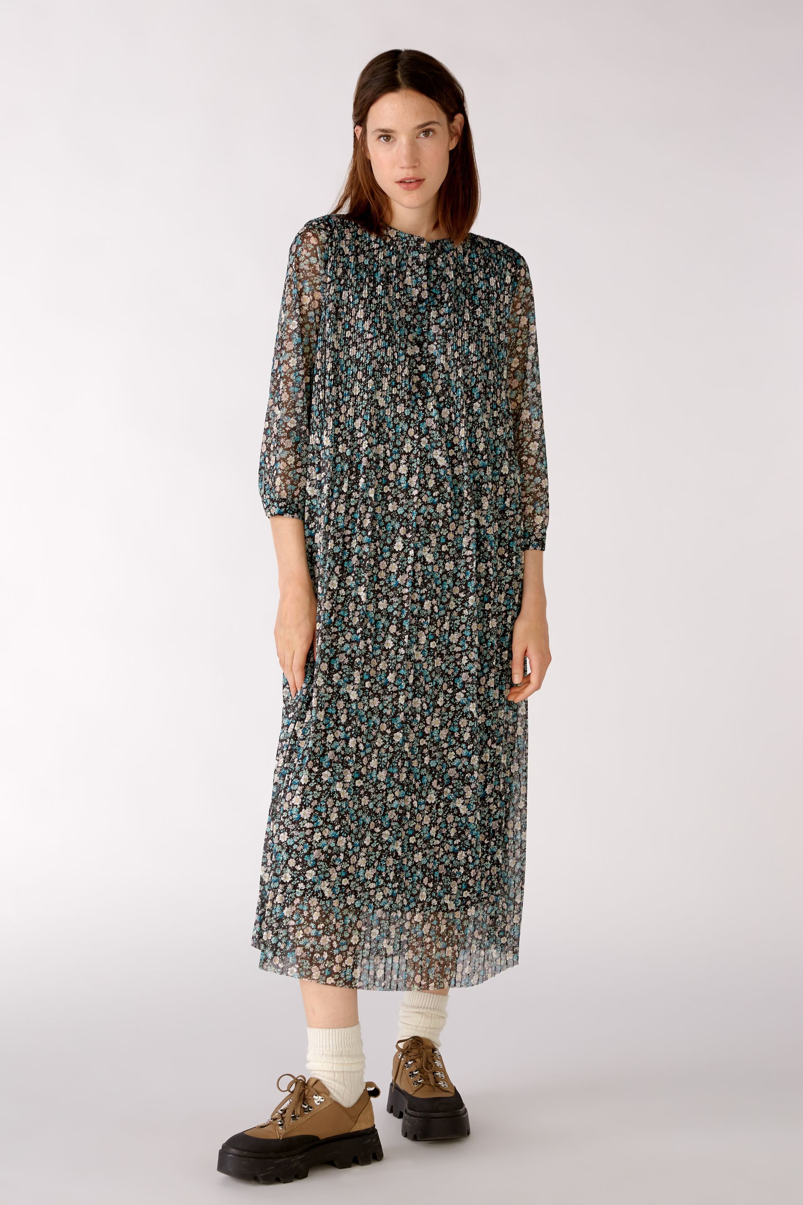 На сайте указаны российские размеры. Свободное макси-платье со складками и принтом. Прозрачная сетка по всей поверхности. Повседневная, непринужденная посадка. Текущая длина миди. Облегающие складки на верхней части туловища, свободные и струящиеся в области юбки. Модель на подкладке.