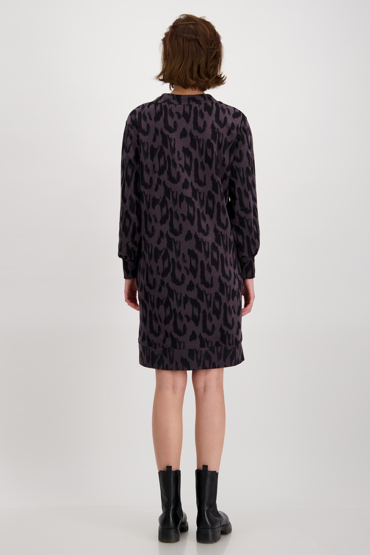 На сайте указаны российские размеры. Спортивное платье миди с воротником-стойкой и принтом по всей поверхности. Это изделие привлекает всеобщее внимание сплошным леопардовым принтом, а лицевая сторона украшена лакированными буквами и стразами, а также сверкающей эмблемой из страз. С воротником-стойкой на кулиске, люверсами и завязками, широкими манжетами с рюшами на концах рукавов и широкой манжетой по низу модель миди прямого кроя предстает с лучшей стороны. Карманы в боковых швах завершают стильный образ. Хлопок в смеси также обеспечивает отличный комфорт при ношении в течение дня. Модель ростом 178 см. Длина спины 44 размера составляет 96 см.