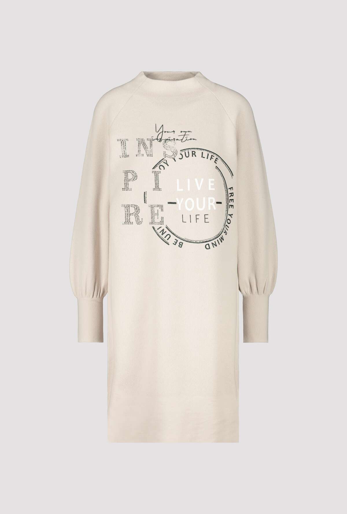 На сайте указаны российские размеры. Длинный прямой крой этого платья миди от monari идеально подчеркивает вашу фигуру. Платье с длинными рукавами реглан, вязаным воротником-стойкой и широкими манжетами с рюшами на концах рукавов можно носить и в прохладные дни. Модель комфортно лежит на коже благодаря обработке 100% чистого, качественного хлопка. Передняя часть украшена буквенной эмблемой из глиттера, стразов и лакового принта, а также сверкающей надписью из страз и небольшой блестящей объемной надписью. Всегда хороший выбор для вашего наряда! Модель ростом 176 см. Длина спины 44 размера составляет 94 см.
