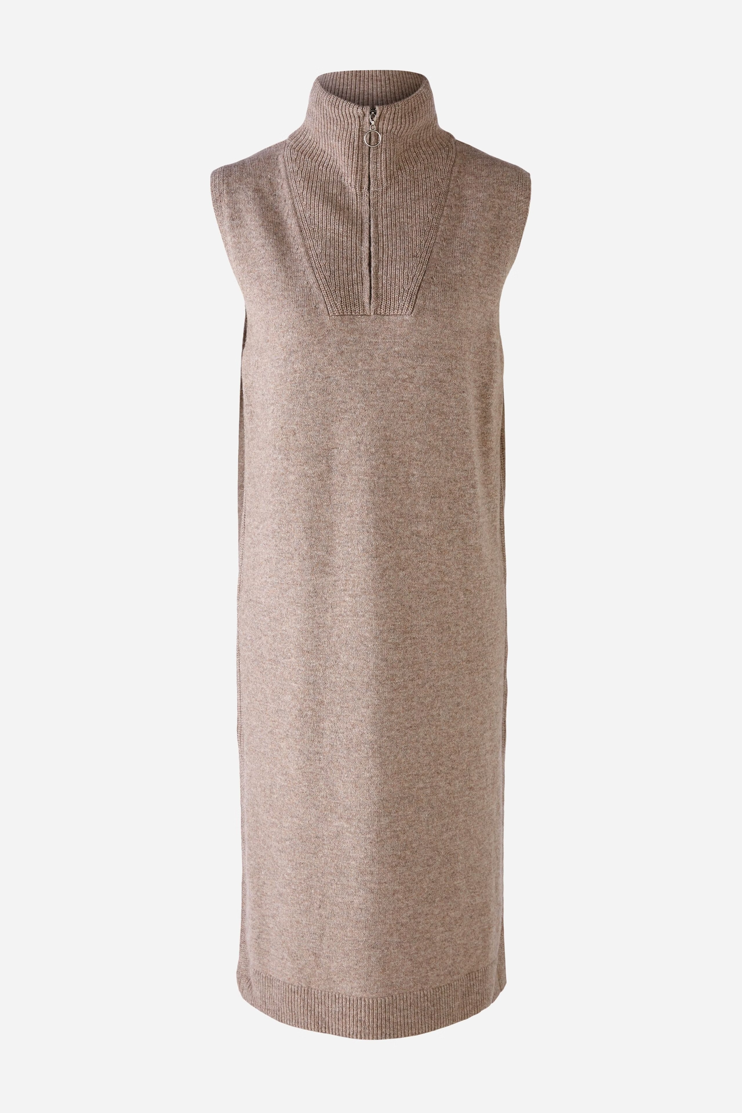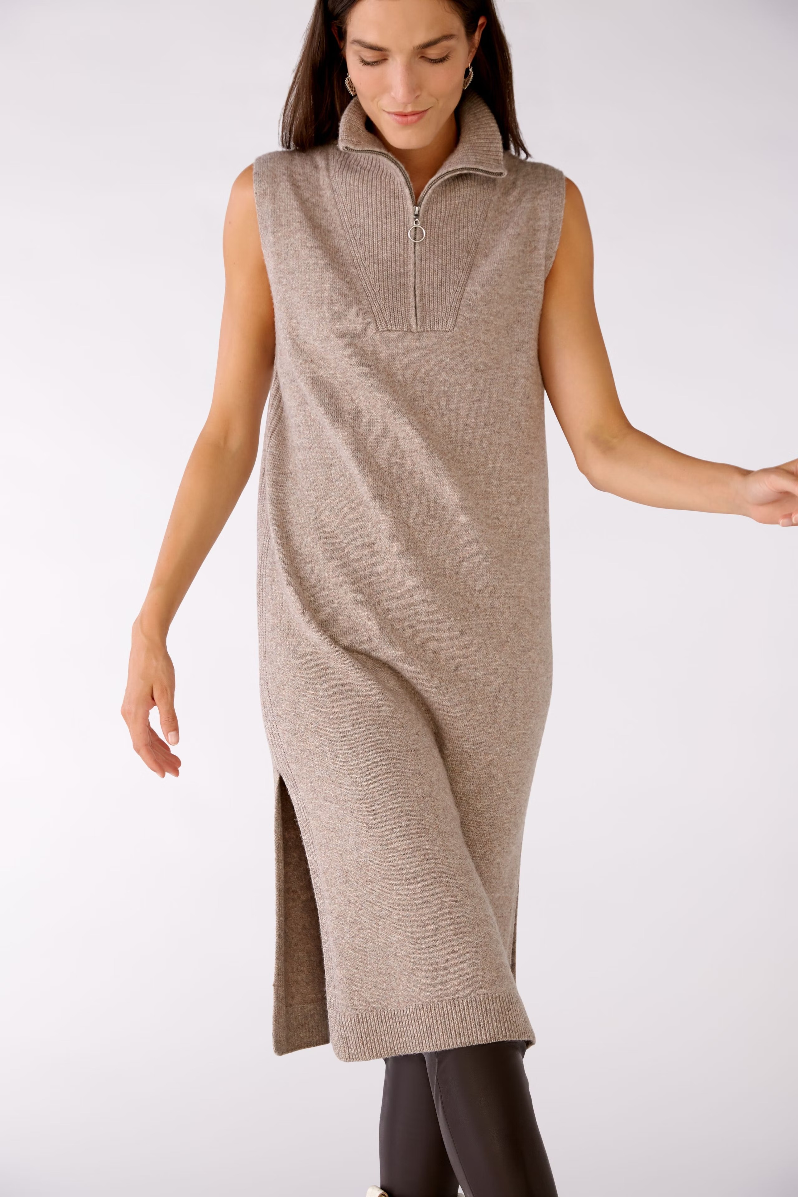 На сайте указаны российские размеры. Мягкое трикотажное платье OUI с модной деталью: воротником на молнии. Мягкая смесь шерсти, простой трикотаж. Повседневный крой со спущенными плечами, прямой трикотаж, длина миди. Двойной тройной воротник-стойка. Молния спереди, заканчивается воротником. Детали в рубчик и разрезы по бокам. Длина в размере 42: 102 см. Рост модели 178 см.