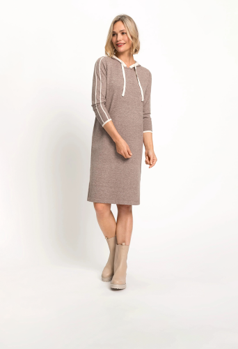 На сайте указаны российские размеры. Платье-свитер, выполненное из мягкой меланжевой пряжи и функциональной кулиской, украшено спортивными полосками на рукавах, придающими изделию особую нотку.