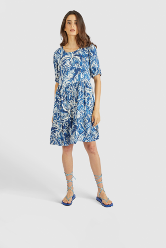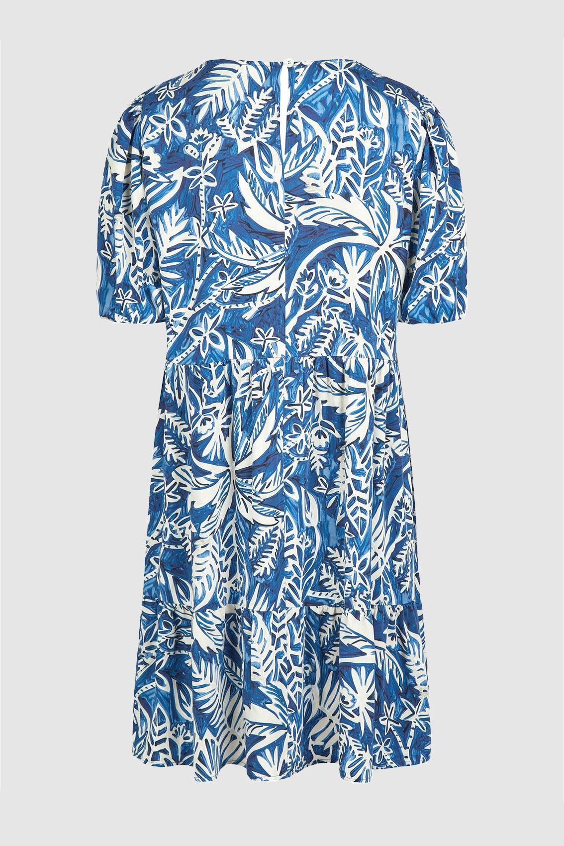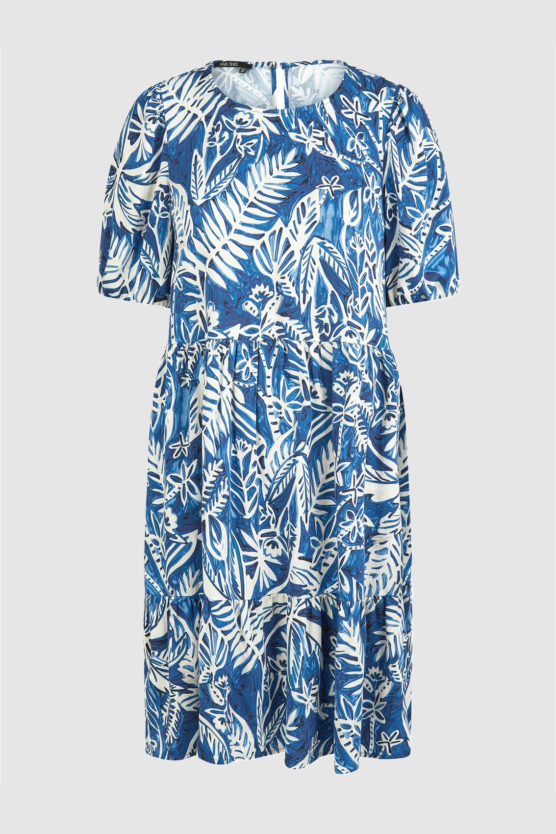Это платье из вискозы прямого кроя особенно летнее благодаря эффектному цветочному принту. Застежка на пуговицы на шее придает изысканный вид. Эффекты ряби привлекают внимание.