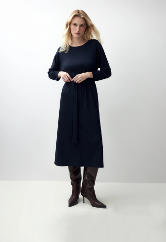 Платье из мягкого и в то же время плотного трикотажа, на эластичном поясе даст вам ощущение свободы движения и комфорта.