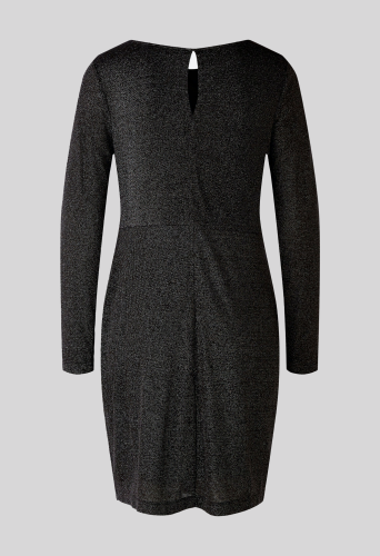 Комфортное платье из эластичного вискозного трикотажа с блестящей пряжью. Облегающий крой, длина до колена. Женственный круглый вырез. Небольшой разрез сзади, не застегивается, легко надевается. Трикотажная подкладка на теле Красивые рюши на талии со скрывающим эффектом. Длина для размера 42 - 92 см.