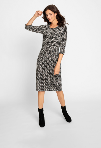 Платье длины миди полностью на подкладке, со сборками на талии, которые подчеркивают фигуру. Высокое содержание вискозы обеспечивает мягкость на коже и приятную драпировку.