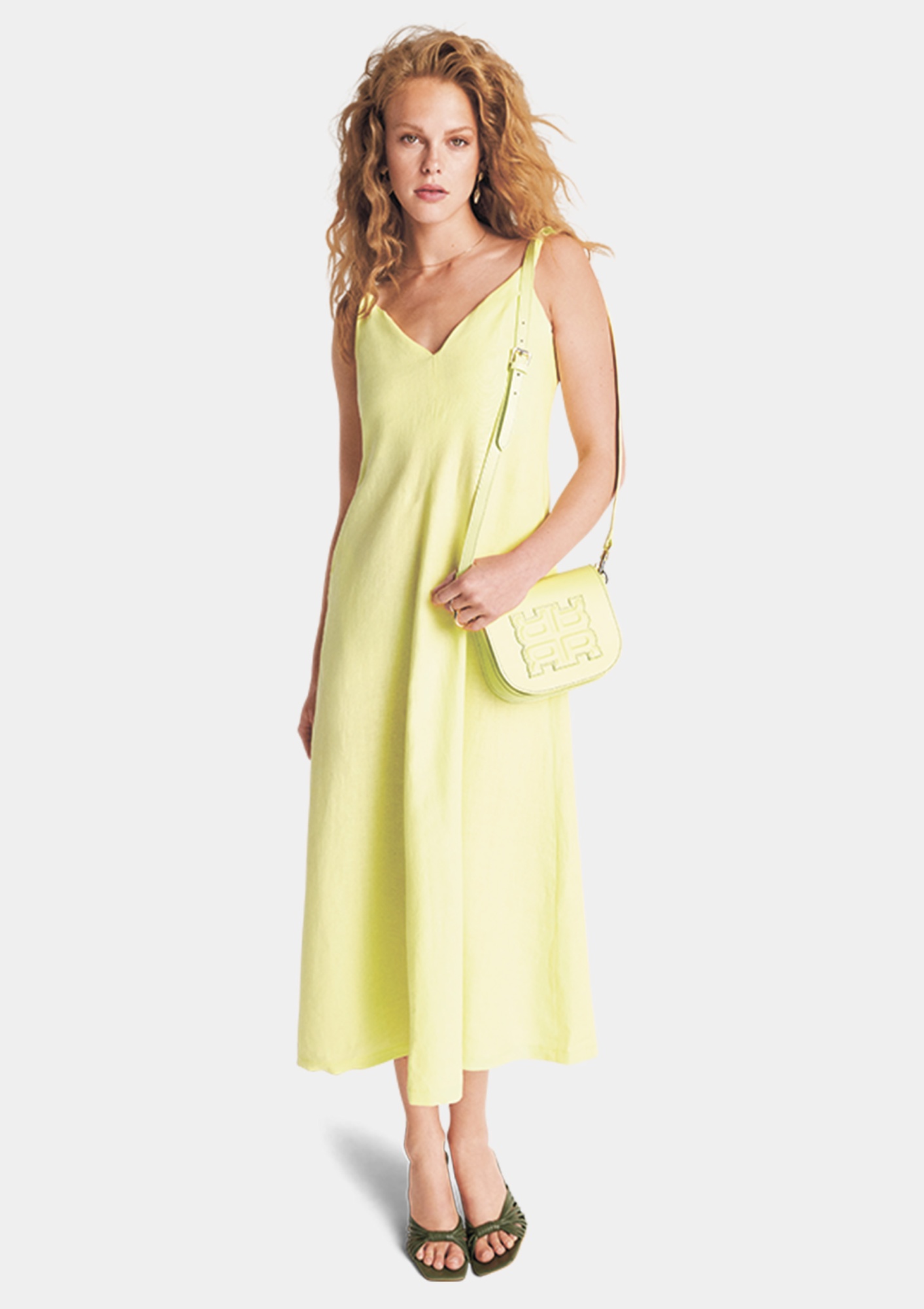 Льняное платье, которое покорит своей естественностью. Женственный V-образный вырез, крученые бретели, модная длина миди и, конечно же, качественная ткань – вот что делает его таким очаровательным. Платье имеет подкладку, поэтому его можно носить для более официальных мероприятий или в офисе.